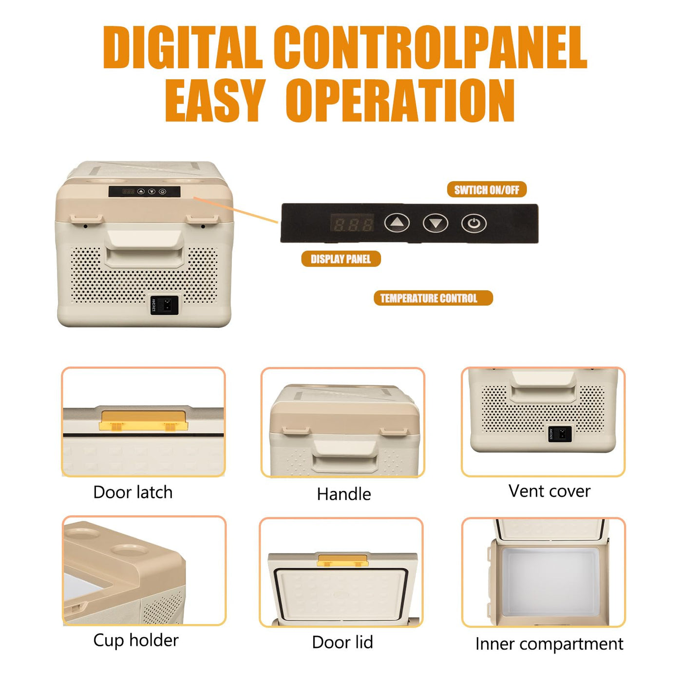 Stay cool and refreshed on the road with this portable car fridge. Its compact design fits conveniently in your vehicle, allowing you to store beverages, snacks, and meals at the perfect chilled temperature. With a generous interior capacity, it can accommodate a variety of items to meet your needs during long drives or outdoor adventures. The fridge features an easy-to-use digital control panel, enabling you to adjust the temperature settings to your desired level. Its efficient cooling system ensures your contents remain fresh and crisp. Constructed with durable materials, this car fridge is built to withstand the rigors of travel. Keep your favorite drinks and foods within reach and enjoy the convenience of having a reliable cooling solution on the go.