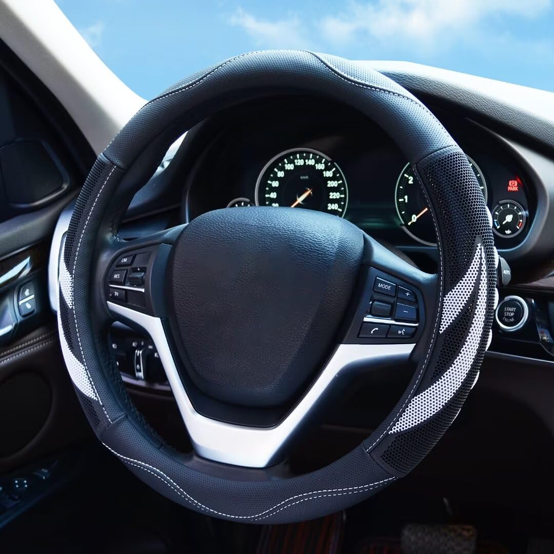 Alusbell Microfiber Leather Steering Wheel Cover Breathable Auto Car Steering Wheel Cover For Men Large-Size With 15 1/2 Inches-