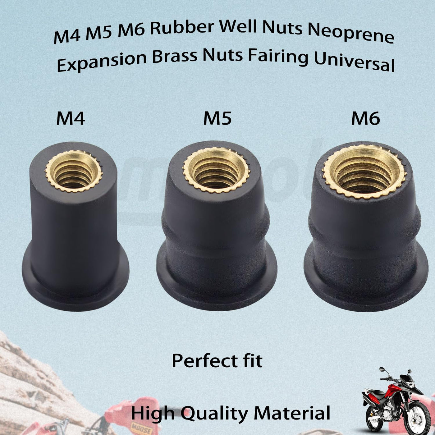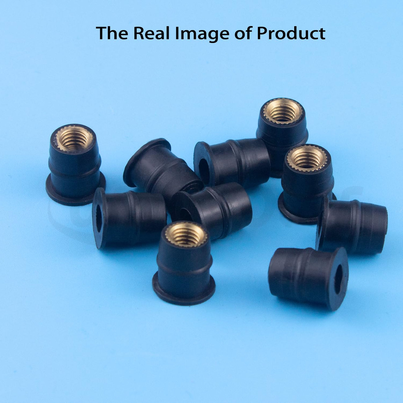 It is Aftermarket Replacement Parts Universal for Motorcycle Canoe, Boat, Kayak. | Made of high quality rubber material and brass nut.Durable, can use for a long time. | 3 sizes to choose from, please confirm the size and compatibility of the product before purchasing. | Easy to install and use, perfect match. | Package includes: 10 X M6 Rubber Well Nuts Neoprene Expansion Brass Nuts.
