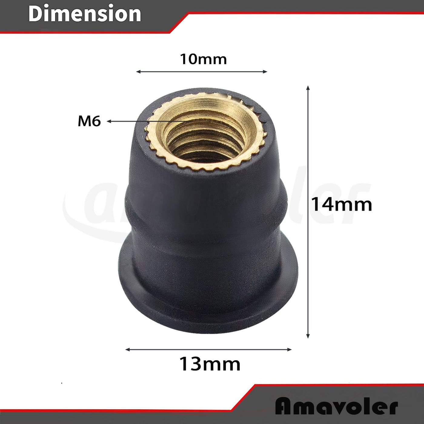 Amavoler 10Pcs M6 Well Nuts Fairing Fasteners Windshield Motorcycle Accessories Screws Universal for Motorcycle Canoe, Boat, Kay