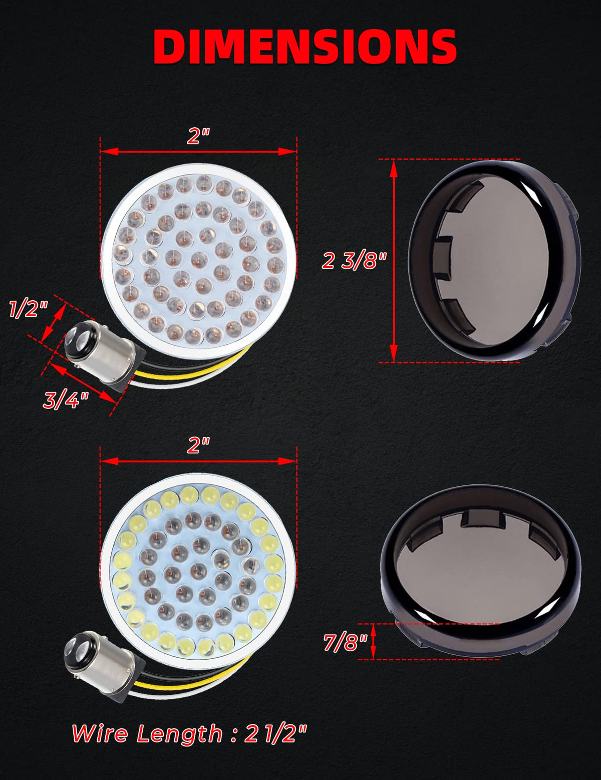 Fitment: Aftermarket 1157 Bullet Led Motorcycle Turn Signal Compatible For Harley Models Such As Dyna Softail Touring Standard 2” Bullet Style Turn Signals With 1157 Socket. For Example: Compatible For Harley Dyna Super Glide 2000-2009 Compatible For Harley Softail 2000-2017 Compatible For Harley Sportster 883 2002-2010 Compatible For Harley Sportster 1200 2002-2018 Compatible For Harley Night Train 2002-2009 Compatible For Harley Fat Boy 2002-2017 Compatible For Harley Road King 2002-2008,2013-2023 Compatible For Harley Cvo Street Glide 2010-2022 Compatible For Harley Electra Glide 2004-2022 Compatible For Harley Street Glide 2006-2023 Compatible For Harley Road Glide 2004-2023 Compatible For Harley Tri Glide 2010-2023 Compatible For Harley Ultra Limited 2014-2023 Compatible For Harley Forty-Eight Xl1200X 2010-2022 Warm Tips: Please Check Your Motorcycle’S Model And Confirm Compatibility Of This Item Before Ordering. 1.Does Not Fit 3-1/4” Flat Style Turn Signals And 1156 Socket. 2.The Turn Signals May Flash Faster Than Normal When It Is Installed On 2010-Older Softails,2011-Older Dynas,2013-Older Sporsters,And 2013-Older Touring And Tri-Glide Models. If A Slower Flash Is Desired,The Load Resistor Is Required. Features: High Quality Led:Our Led Turn Signal Bulbs Use High Quality 48 Leds, Super Bright And Halo-Free, More Than 200% Brighter Than Halogen Lights And Consume Less Energy. Long Lifespan: Led Turn Signals Are Designed With Advanced Circuitry And Built-In Overload Protection.The Circuit Is Protected By Special Resin Coating, Which Contribute To Over 50,000H Lifespan. Easy To Install: Integrated Handle Design,Plug And Play. Package Included: 2 X Front Turn Signals 2 X Rear Turn Signals /Brake Tail Lights 4 X Smoke Turn Signal Lens Covers Instruction Not Included
