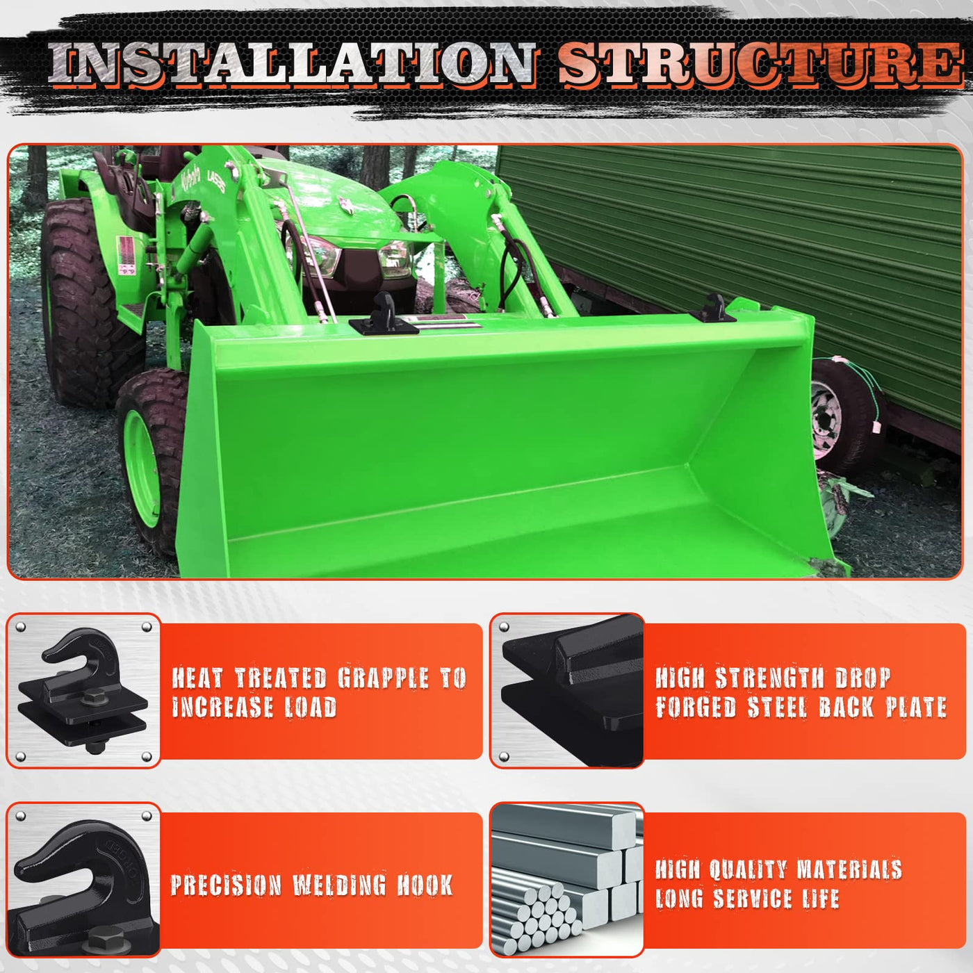 AMBULL 2 Pack 3/8'' Tractor Bucket Grab Hook Grade 70 Forged Steel Bolt On Grab Hook Tow Hook Mount with Backer Plate,Work Well