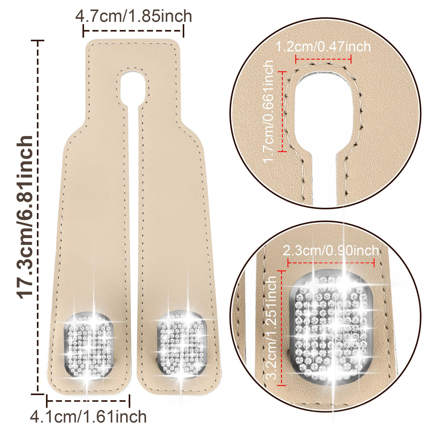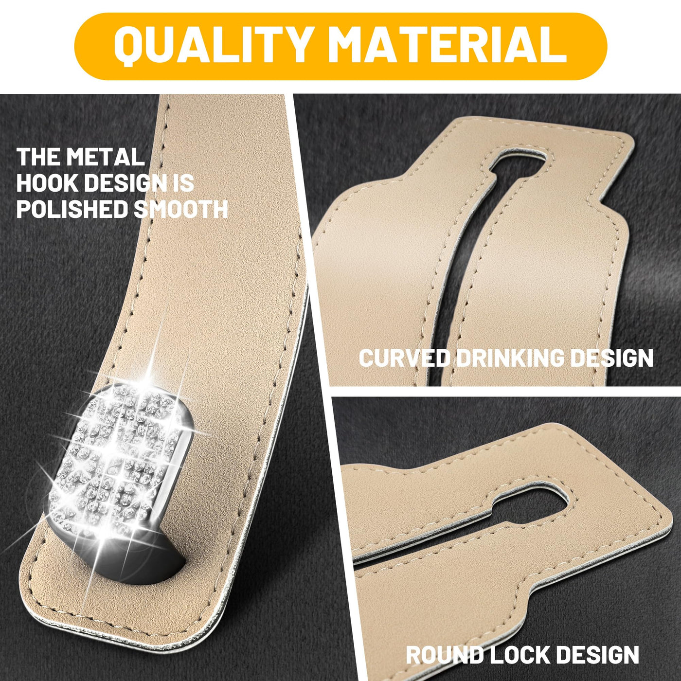 Amelity Headrest Hooks for Car, Bling Car Hooks for Purses and Bags Cute, Car Seat Back Storage (2 Pack, Beige)