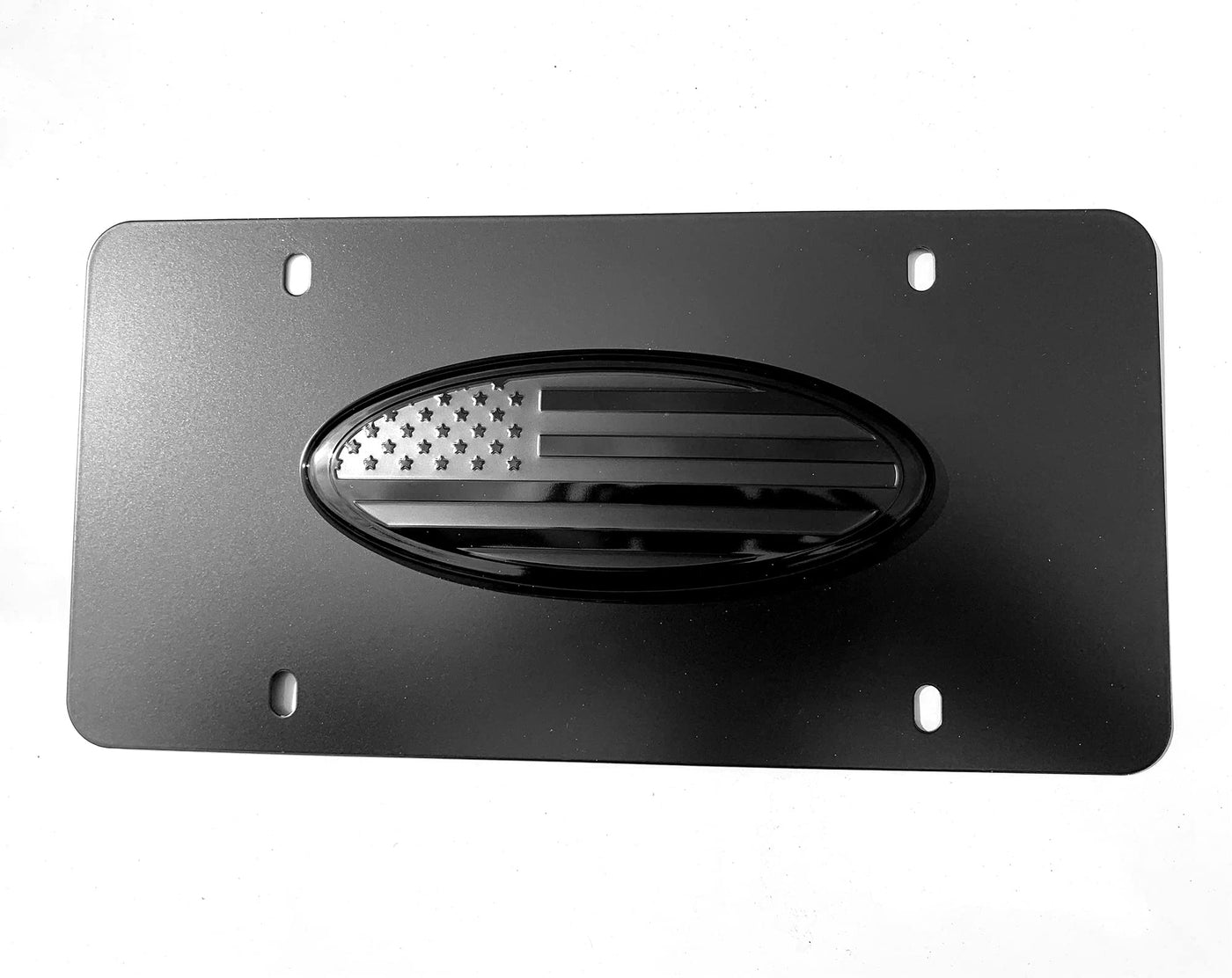 American Black Flag Stainless Steel License Plate (12X6 (3D Oval Emblem)
