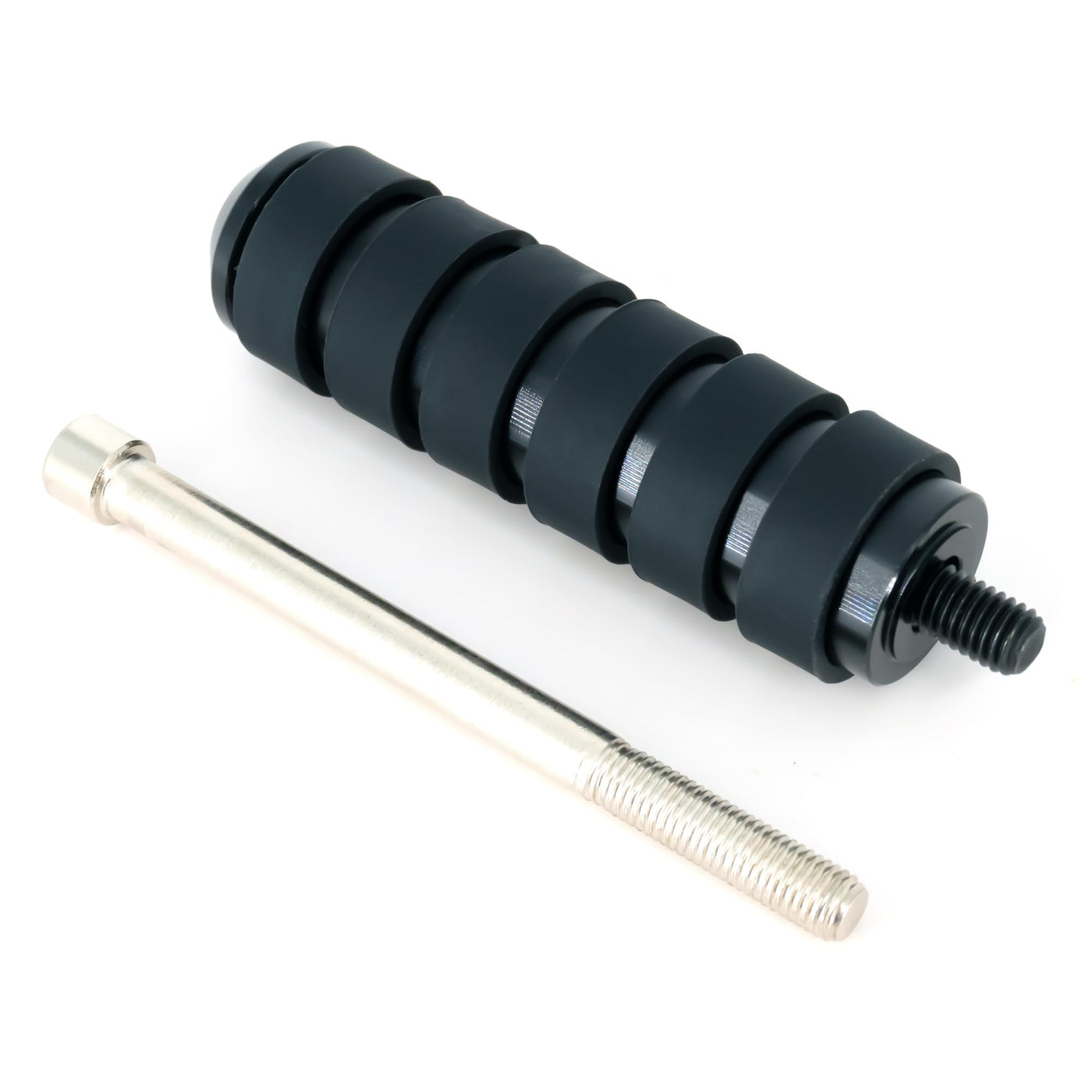 Q: How does the extended design of the shifter peg improve comfort while riding?A: The extended design of the Americruise shifter peg provides more space for your foot to shift and rest comfortably. Additionally, the rubber ring features help to reduce vibrations during riding, contributing to a more comfortable experience on long journeys.