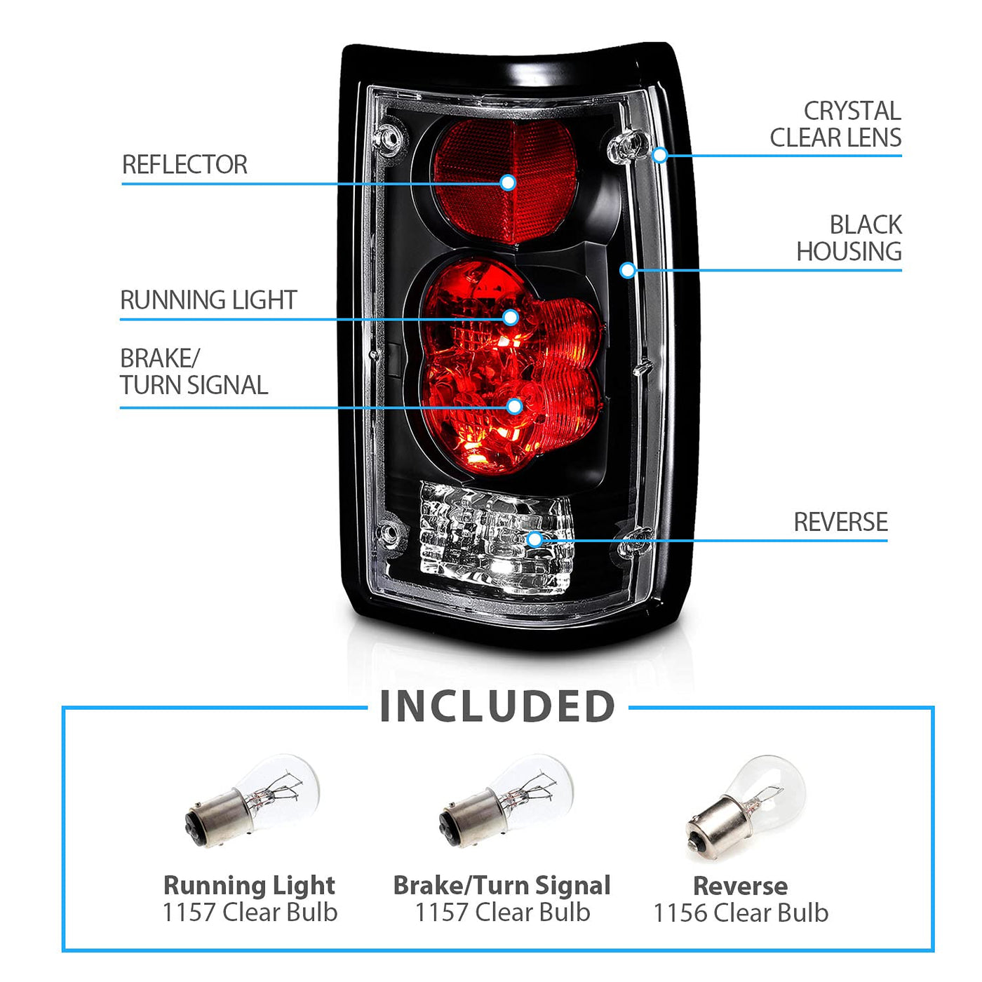 Q: What vehicles are compatible with the AmeriLite Black Euro Tail Lights?A: The AmeriLite Black Euro Tail Lights are specifically designed to fit the 1986-1993 Mazda B2000, B2200, and B2600 Pickup Truck models.