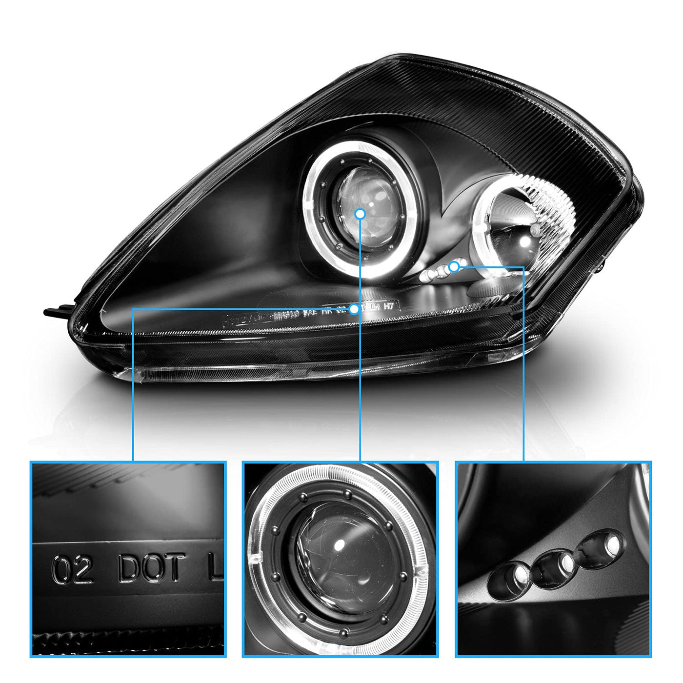 Amerilite Black Led Dual Halo Projector Replacement Headlights Set For 00-05 Mitsubihi Eclipse - Passenger And Driver Side