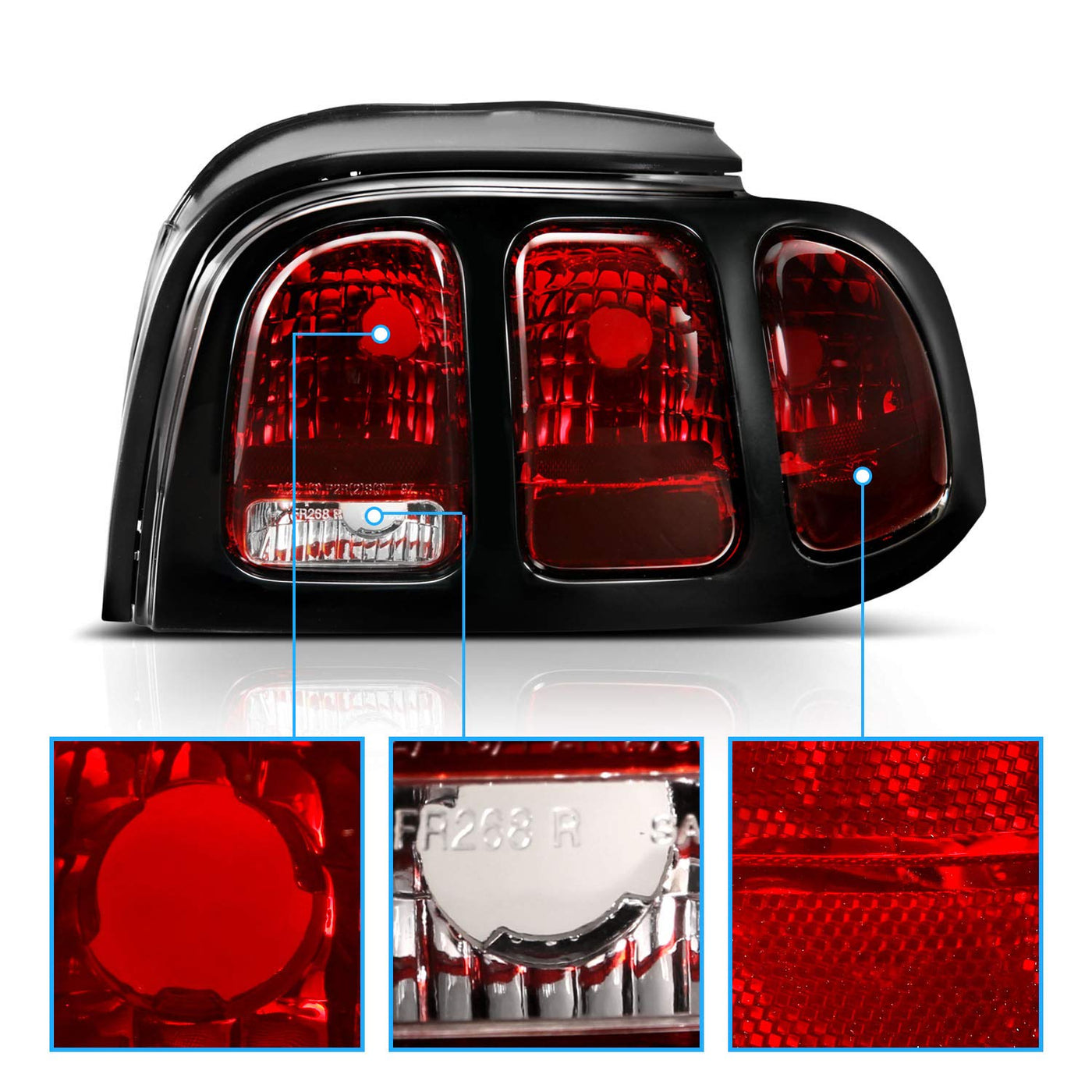 Amerilite For 1994-1998 Ford Mustang Black Housing Dark Red Oe Style Replacement Brake Tail Lights Set - Passenger And Driver Side