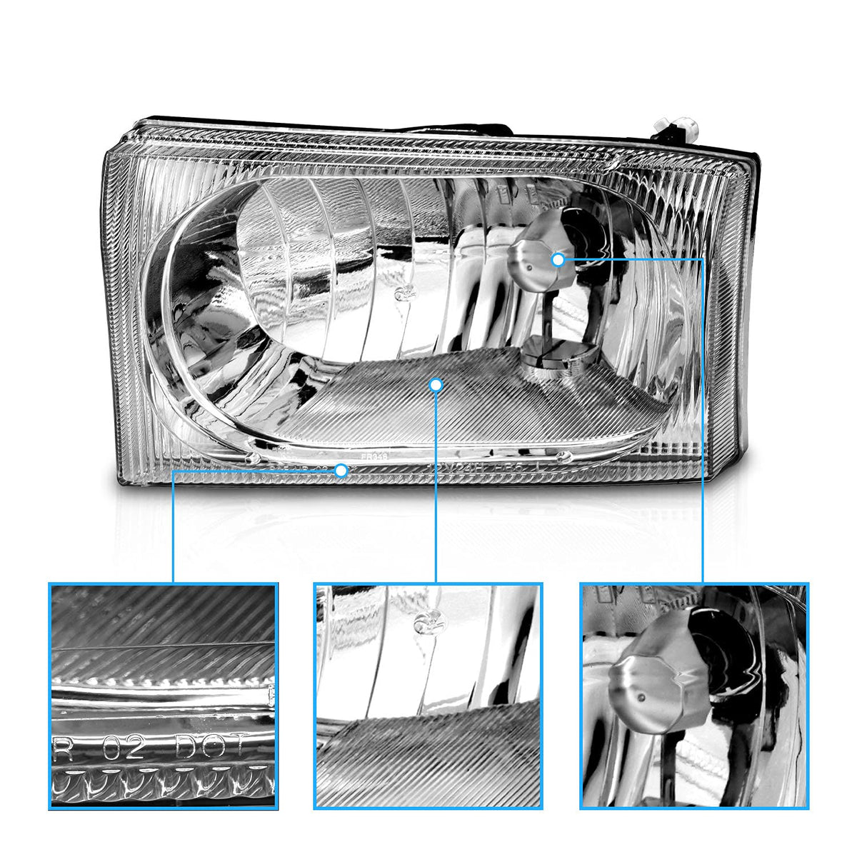 Amerilite For 1999-2004 Ford Super Duty F-250/F-350/F-450/F-550 | Excursion Chrome Headlights Beams Pair - Passenger And Driver