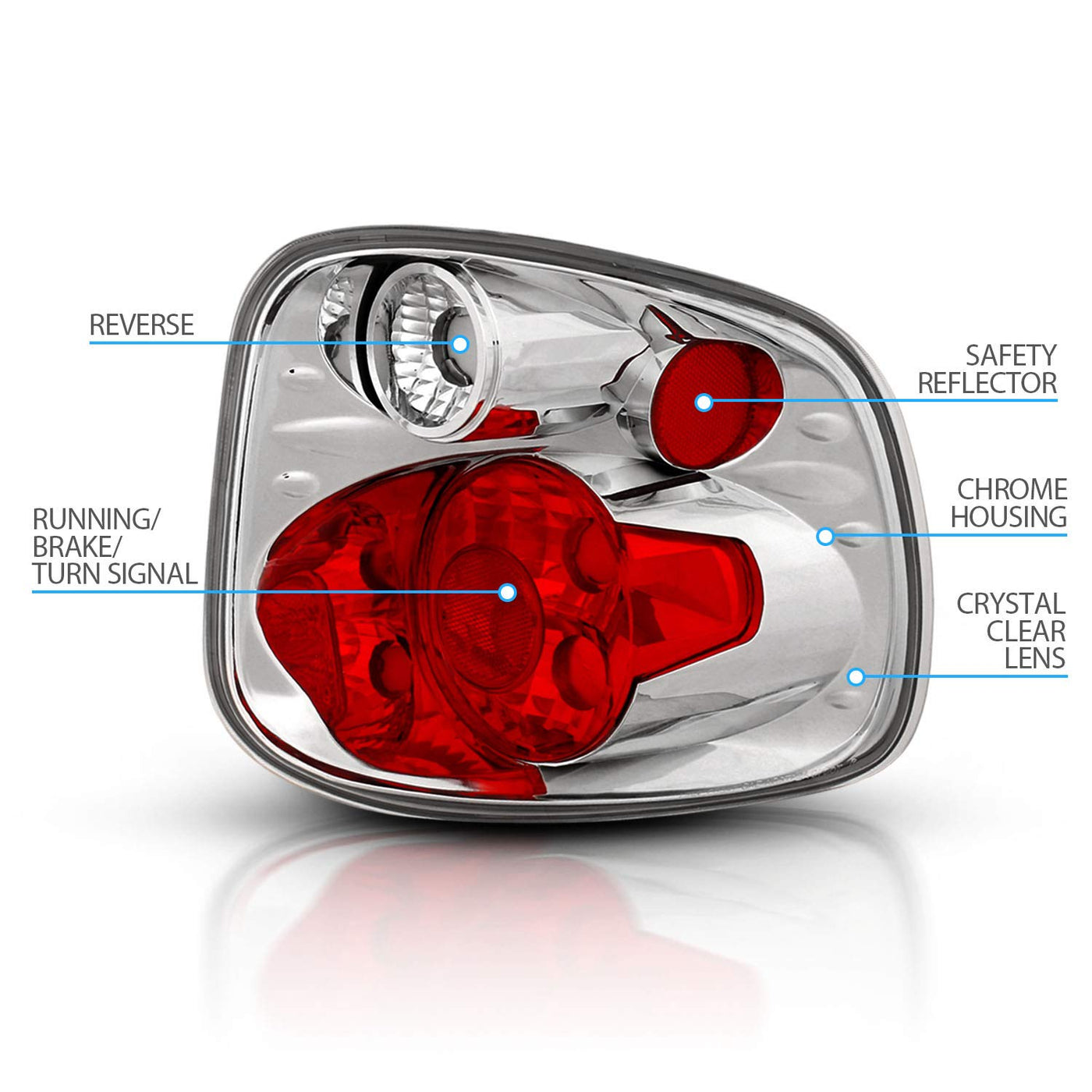 Amerilite For 2001-2003 Ford F-150 Flareside Euro Chrome Replacement Tail Lights Brake Lamp Pair - Passenger And Driver Side