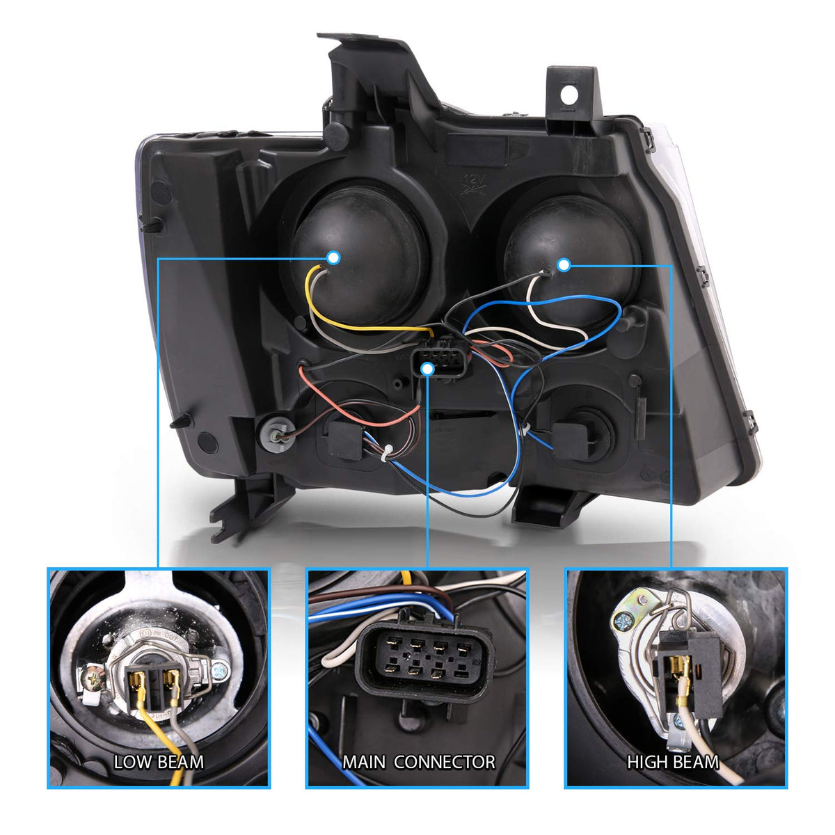 Fits: 2007, 2008, 2009, 2010, 2011, 2012, 2013 Chevrolet AvalancheFits: 2007, 2008, 2009, 2010, 2011, 2012, 2013 Chevrolet SuburbanFits: 2007, 2008, 2009, 2010, 2011, 2012, 2013 Chevrolet TahoeComplete set includes Left (Driver Side) and Right (Passenger Side)CONDITION: Brand New In Original PackagingHigh Quality Headlights made by OEM approved manufactureres with materials that meet or exceed strict OEM requirements.Do not come with installation instructions and professional installation highly recommended.