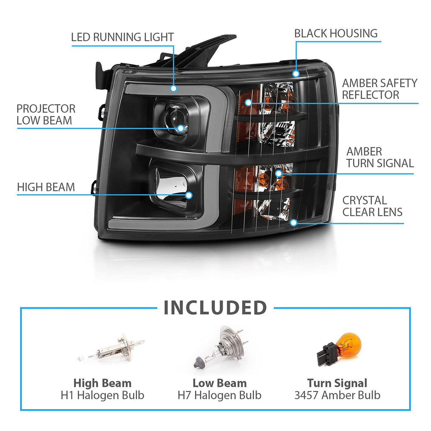Fits: 2007 Chevy Silverado 1500 New Body Style (Gmt901) Fits: 2008-2013 Chevy Silverado 1500 (Gmt901) Fits: 2009-2013 Chevy Silverado 2500Hd, 3500Hd (Gmt911) Fits: 2014 Chevy Silverado 2500Hd, 3500Hd Old Body Style (Gmt911)Complete Set Includes Left (Driver Side) And Right (Passenger Side)Condition: Brand New In Original Packaginghigh Quality Headlights Made By Oem Approved Manufactureres With Materials That Meet Or Exceed Strict Oem Requirements.Do Not Come With Installation Instructions And Professional Installation Highly Recommended.