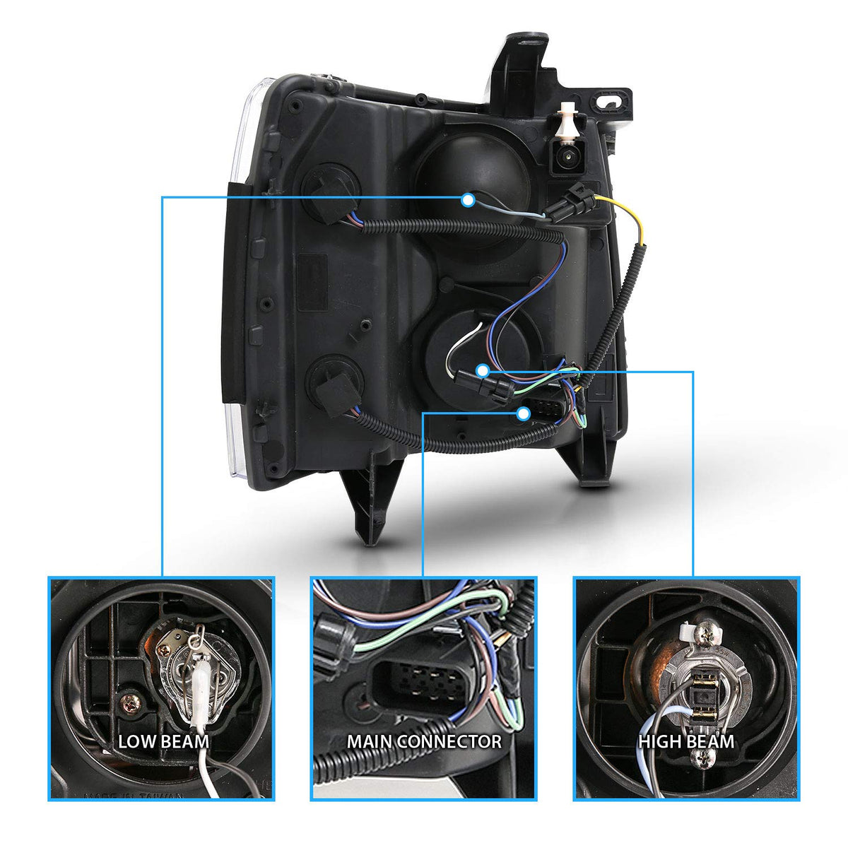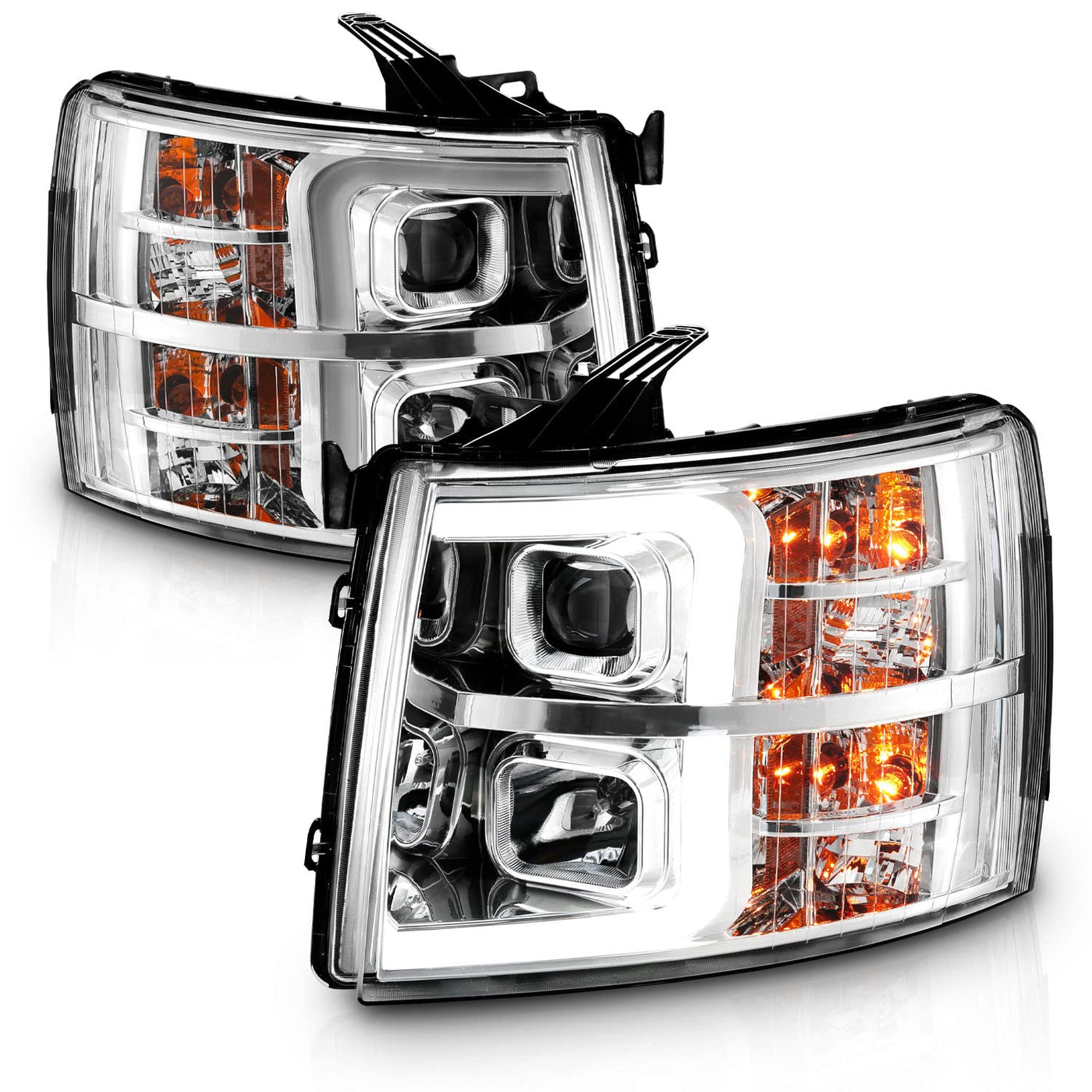 Amerilite For 2007-2013 Chevy Silverado 1500/07-14 Silverado 2500Hd 3500Hd Led, Halogen, Tube Quad Projector Chrome Car Headligh