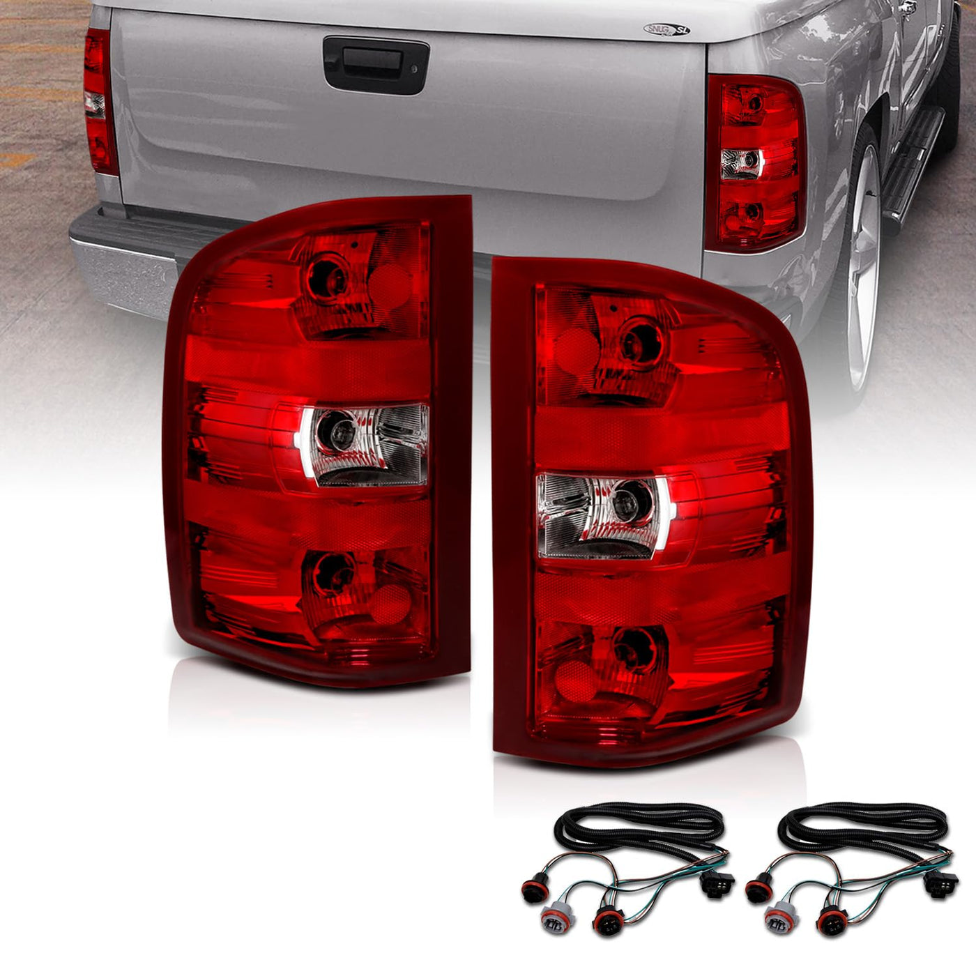 AmeriLite for 2007-2014 Chevy Silverado 1500 2500 3500 Pickup Clear Red OE Replacement Tail Light Brake Lamp Pair w/Bulb and Harness - Passenger and Driver Side