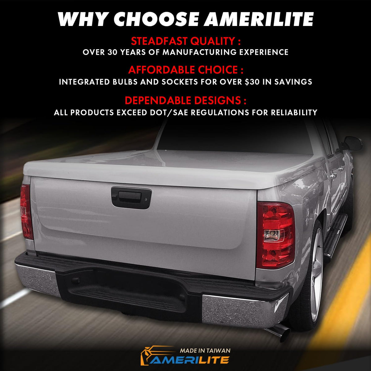 Q: What vehicles are compatible with the AmeriLite Tail Light for Chevy Silverado?A: The AmeriLite Tail Light is compatible with 2007-2013 Chevy Silverado 1500, 2007-2014 Silverado 2500HD and 3500HD models, as well as 2007-2014 GMC Sierra 3500 Dually models. Please note that it does not fit Hybrid, Classic Body, or Single Rear Wheel models.
