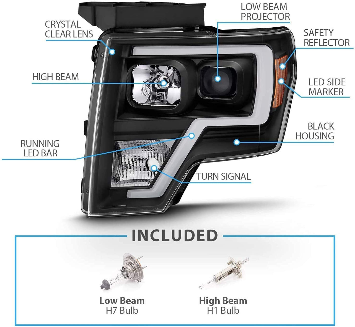 Amerilite For 2009-2014 Ford F150 Truck Led Bar Square Projector Halogen Black Headlights Set High/Low Beam Bulb Included - Driv