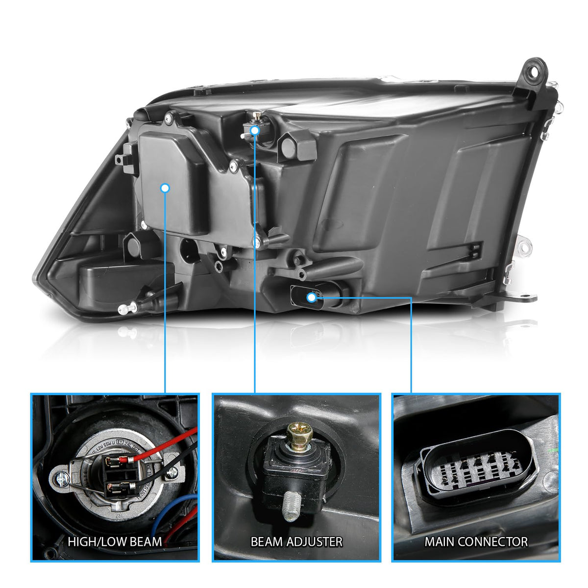 Fits: 2009, 2010, 2011, 2012, 2013, 2014, 2015, 2016, 2017, 2018 Dodge RAM 1500Fits: 2010, 2011, 2012, 2013, 2014, 2015, 2016, 2017, 2018 Dodge RAM 2500, 3500Fits: 2019 Dodge RAM Classic Body Model (Do NOT Fit 19 New Body Models)Compatible with BOTH Factory Projector and Quad / Dual Beams Headlamp ModelsHigh durability new material with UV and Abrasive coating to protect harmful sun light while provide long lasting light output performanceComplete set includes Left (Driver Side) and Right (Passenger Side)CONDITION: Brand New In Original PackagingHigh Quality Headlights made by OEM approved manufacturers with materials that meet or exceed strict OEM requirements.Do not come with installation instructions and professional installation highly recommended.