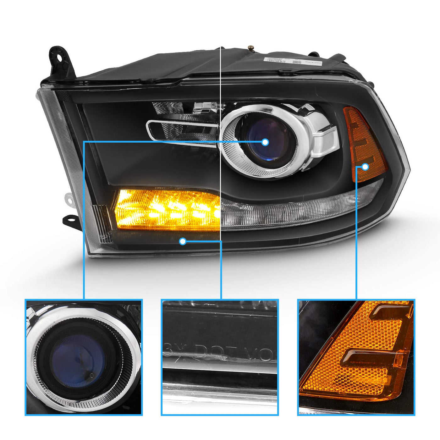 Amerilite For 2009-2018 Dodge Ram 1500 2500 3500 Dual/Projector Models Switchback Led Tube Matte Black Replacement Headlight Ass