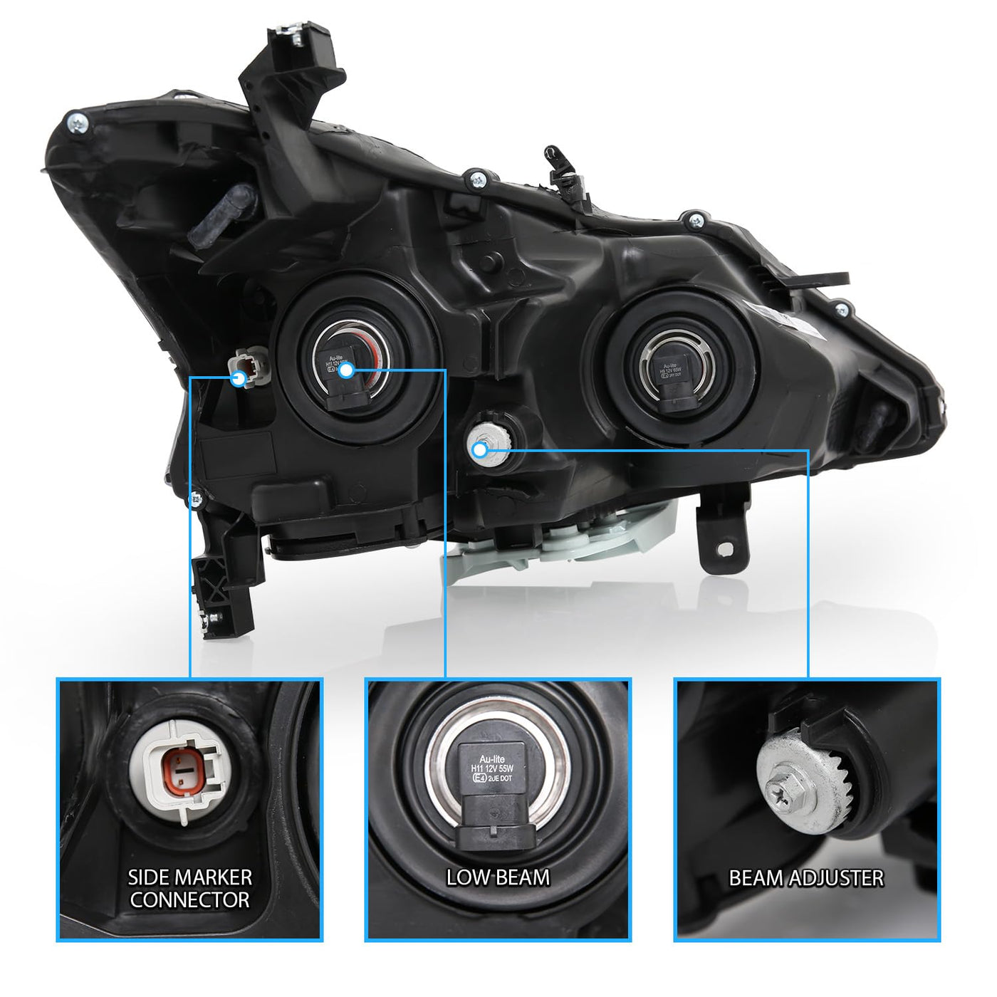 Amerilite For 2013-2015 Altima Sedan Gun Metal Tint Replacement Halogen Projector Headlight Pair - Driver And Passenger Side