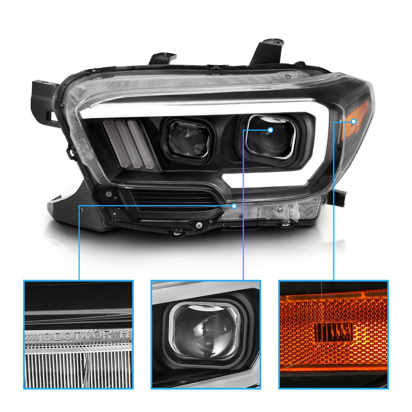 Amerilite For 2016-2022 Toyota Tacoma Trd W/Drl Switchback Led Tube Quad Projector Black Replacement Headlight Assembly Pair - Passenger And Driver Side