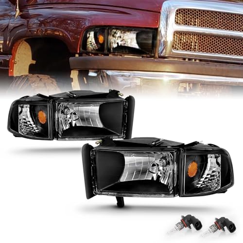 Amerilite For Dodge 1994-2001 Ram 1500 | 94-2002 Ram 2500 3500 Black Oe Halogen Replacement Headlights Assembly W/Corner Lights Set - Passenger And Driver Side