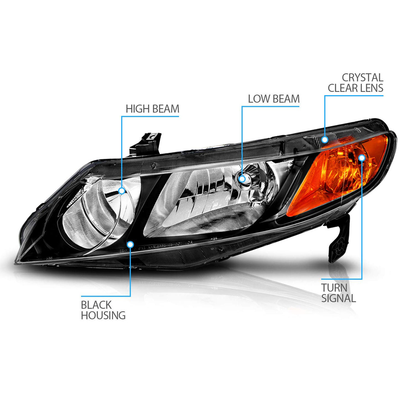 Fits: 2006, 2007, 2008, 2009, 2010, 2011 Honda Civic 4 Door Sedan OnlyIncluding DX | GX | EX | LX ModelsFits: 08, 09, 10, 11 Honda Civic 4-Door Si Sedan & 08 MUGEN Si Sedan ModelsComplete set includes Left (Driver Side) and Right (Passenger Side)CONDITION: Brand New In Original PackagingHigh Quality Headlights made by OEM approved manufactureres with materials that meet or exceed strict OEM requirements.Do not come with installation instructions and professional installation highly recommended.