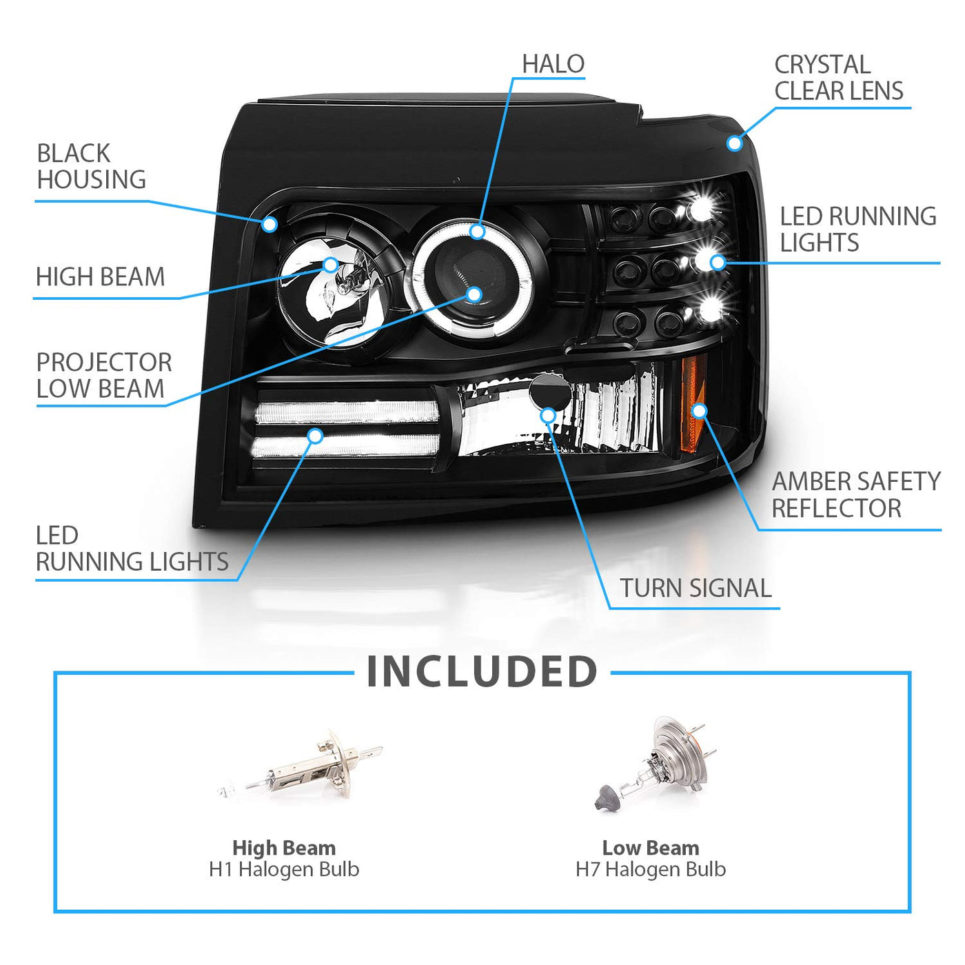 Amerilite Led Halo Bar Projector Replacement Halogen Car Headlights Set For Ford F-150/F250/F350/Bronco - Passenger Right And Dr