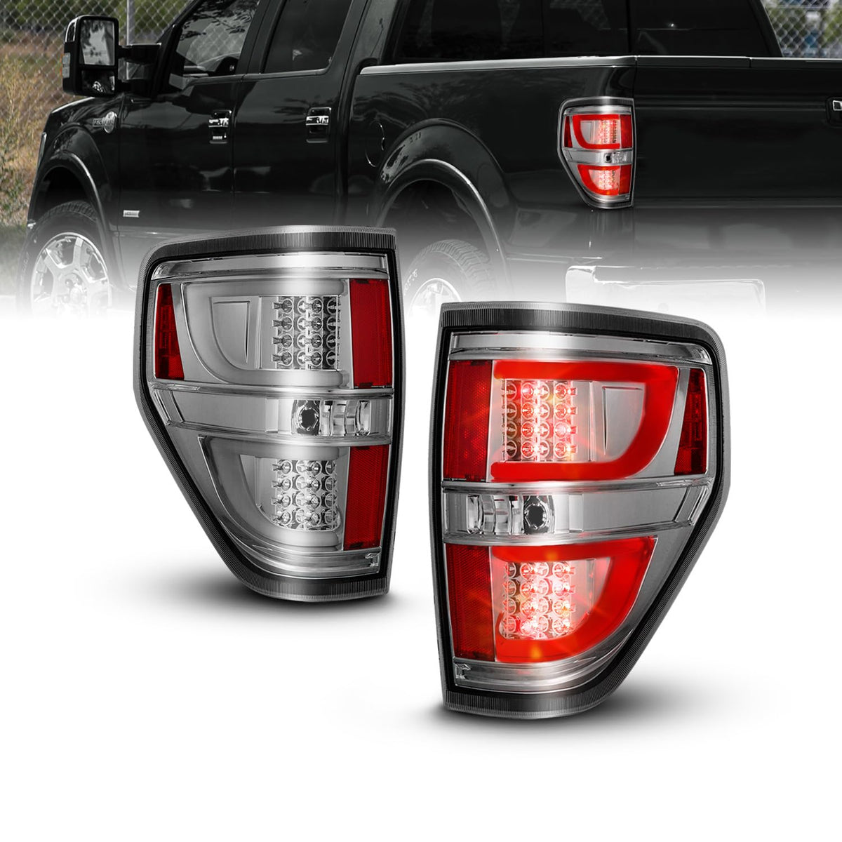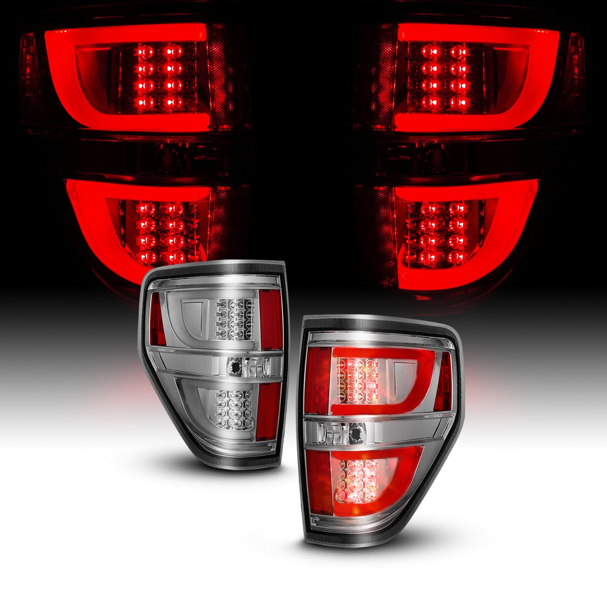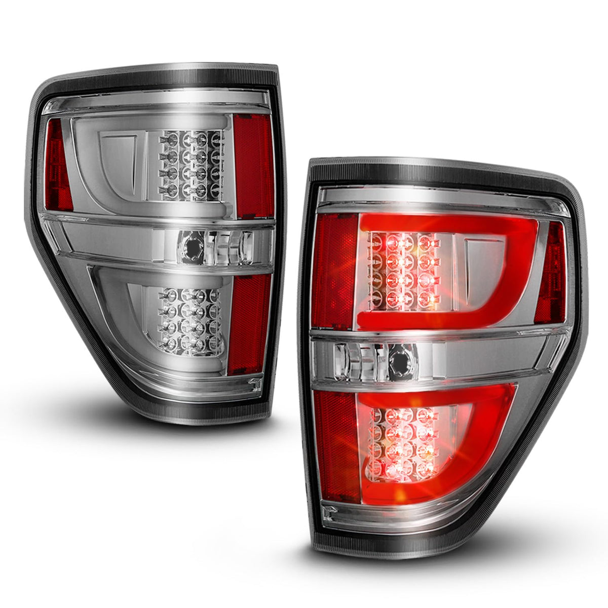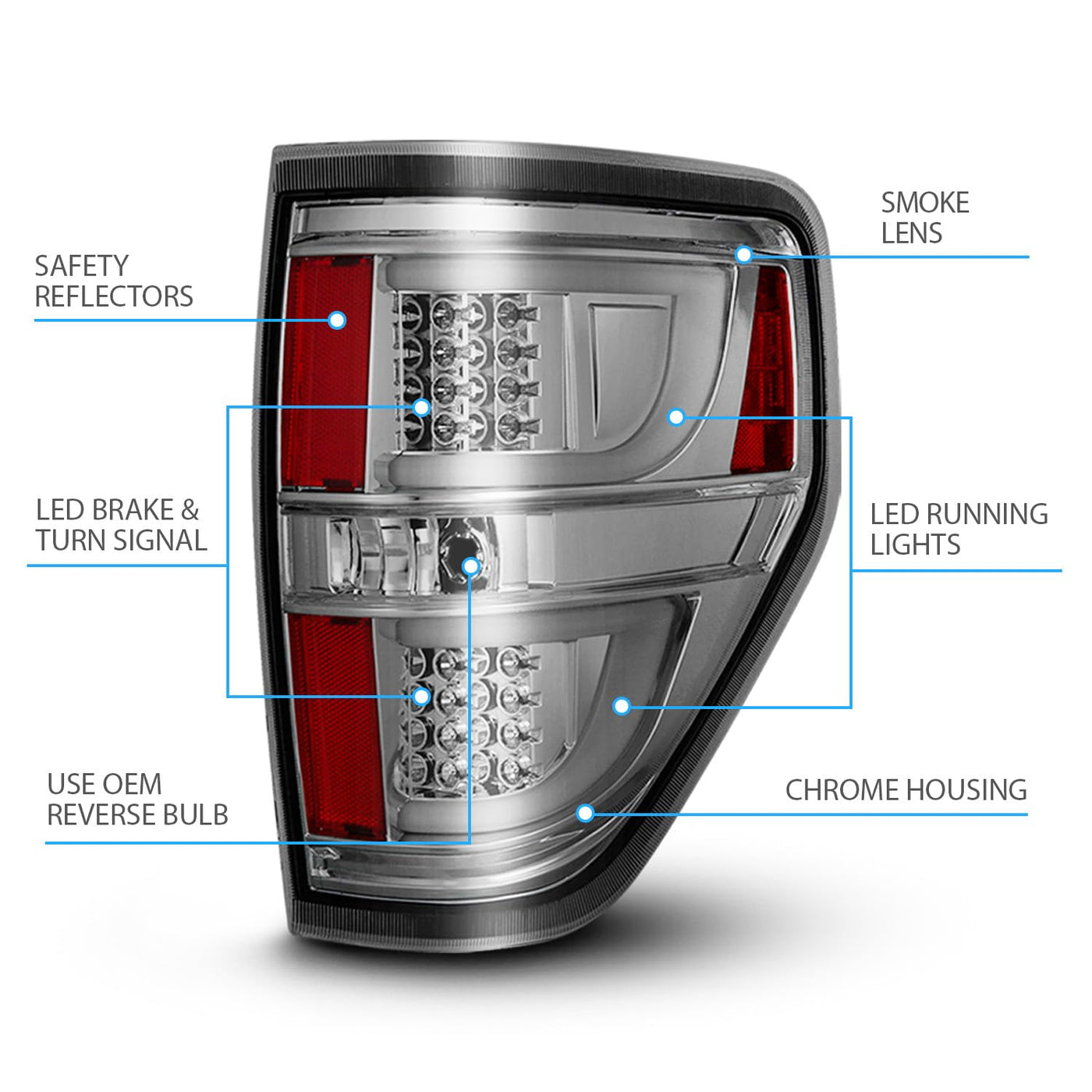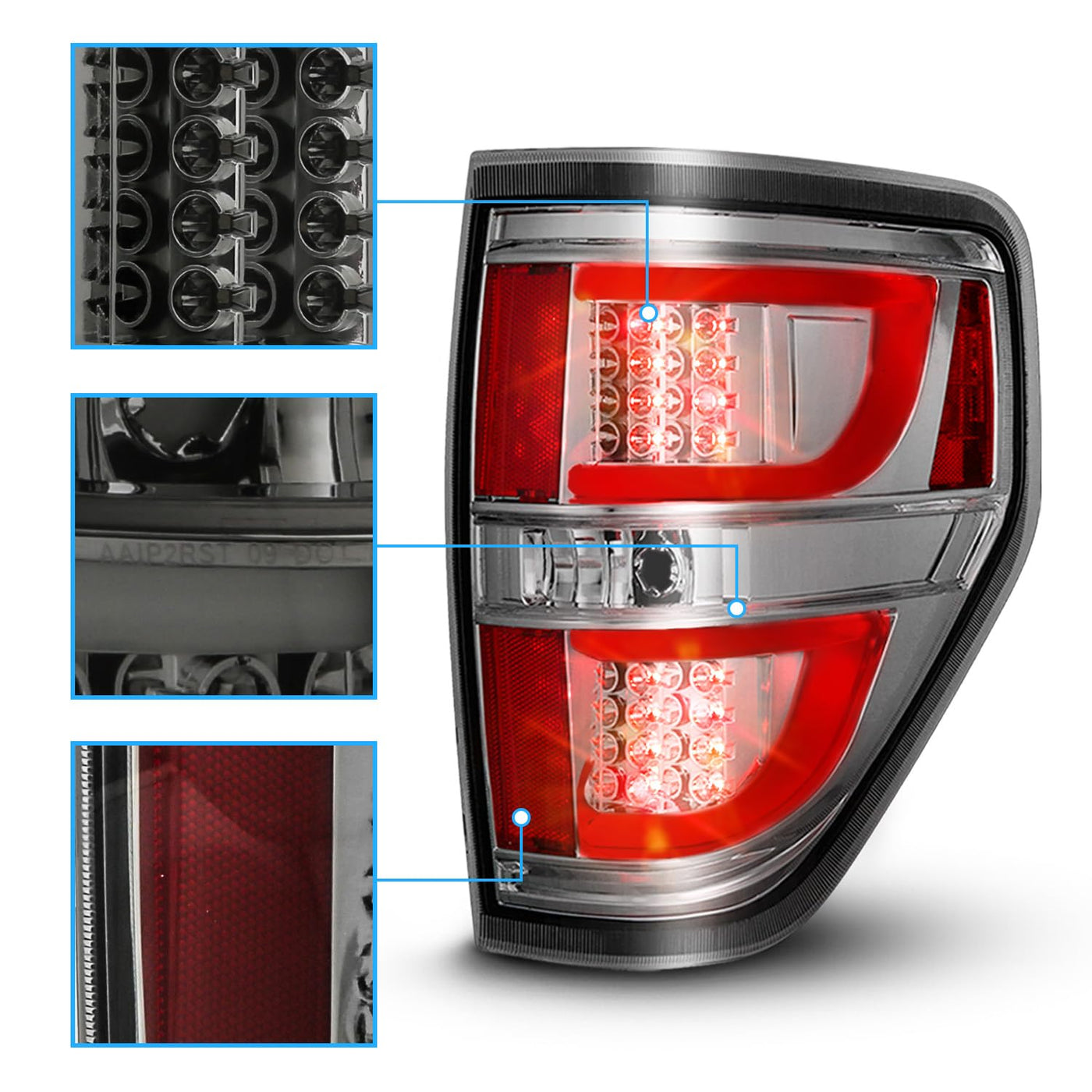 AmeriLite Light Chrome Housing Light Tint Smoke Lens LED Tube Bar Replacement Brake Tail lights Set For Ford F-150 Pickup Truck - Passenger and Driver Side, Vehicle Light Assembly, Smoke