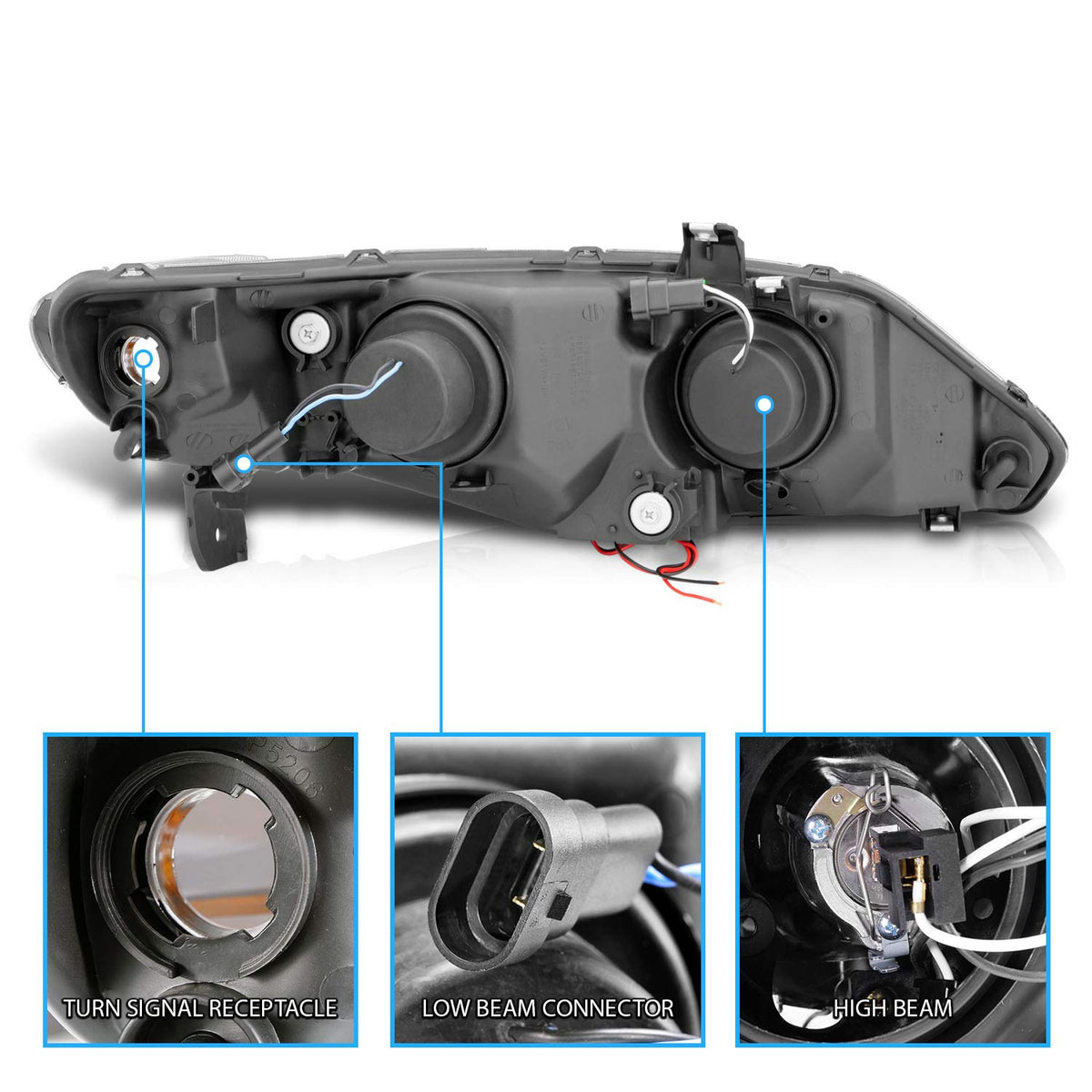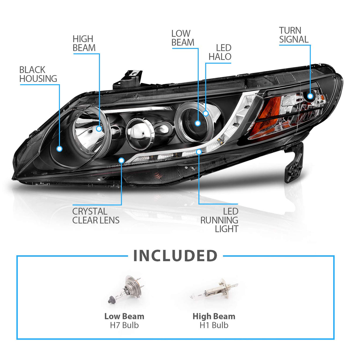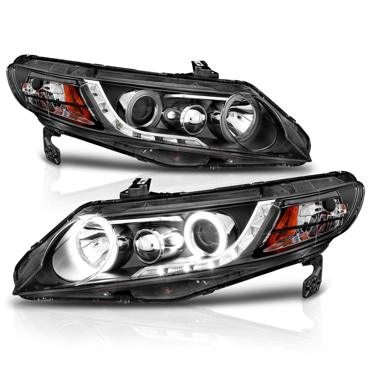Amerilite Projector Halogen Headlights Amber Xtreme Led Halo For 2006-2009 Honda Civic 4 Door/Hybrid Sedan - Passenger And Driver Side, Vehicle Light Assembly, Black