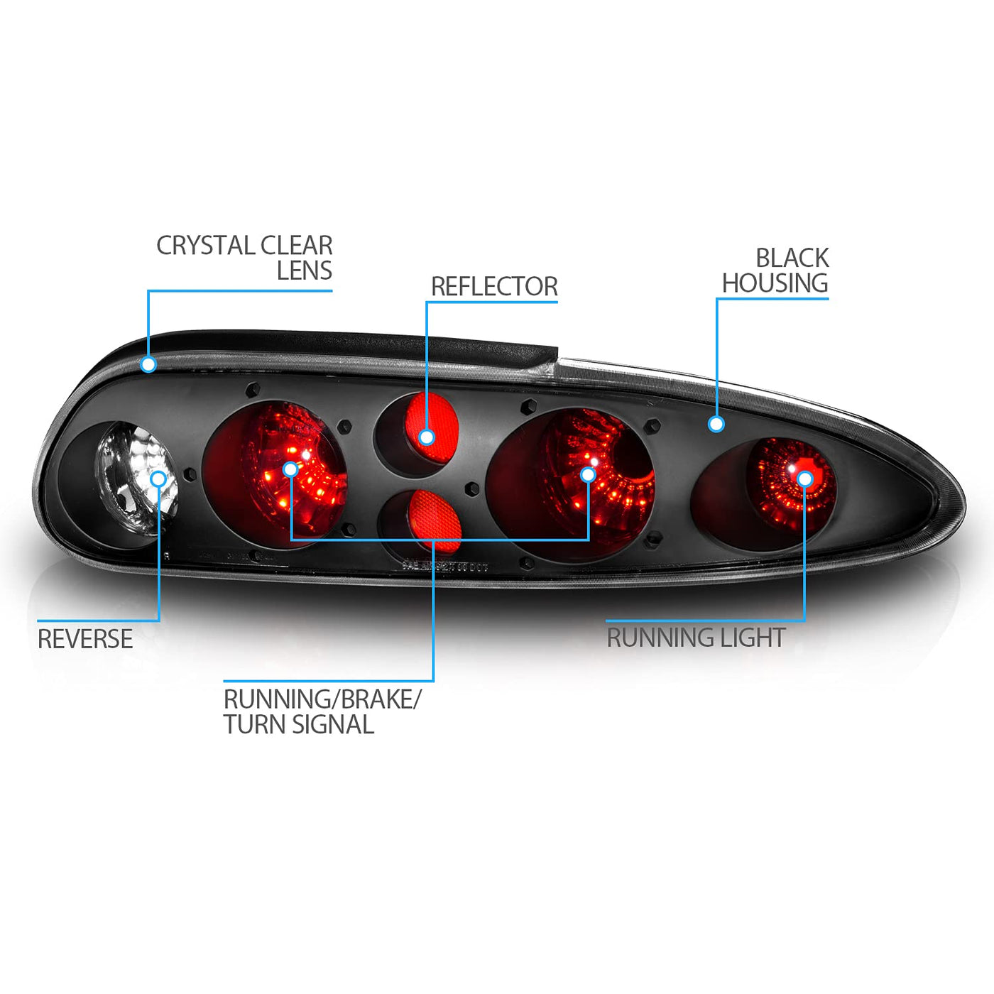 Amerilite Replacement Taillights Black For 93-02 Chevy Camaro - Passenger And Driver Side