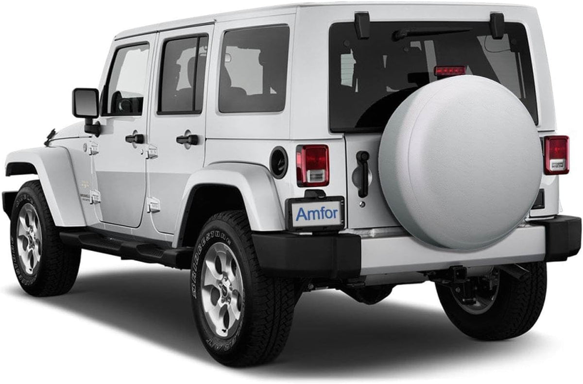 Overview: 1. Easy to install and remove, no tools required.2. Waterproof and non-scratch.3. Long lasting and durable.4. Provide UV protection.5. Helps keep dirt, rain and sun away from spare tire.6. Greatly improves vehicle appearance, keep spare tire clean.7. Elastic band design for a fast and adjustable fit.8. Sewing fine helps ensure weatherproofing of seams.9. Bottom drainage to prevent moisture build-up.10. Protects against knocks and scratches.11. Not only prevent your spare wheel from corroding, but also make your vehicle more fashion.12. Protect the tires and wheels from sun, dirt, corrosion and all types of weather while your vehicle is parked.13. Universal fit for Jeep, Trailer, RV, SUV, Truck and many vehicle.14. 22'',26'' - 27'', 28 ''- 29 '', 30 '' - 31 ''and 32 '' - 33 '' tire diameter for you to choose from.15. Tires left exposed to the sun and other environmental hazards will deteriorate much faster than you might think and could potentially lead to on-road blowouts as well as costly replacement. Amfor's Spare Tire Covers are a cost effective way to prolong the life of your tires and reduce expenses long term. Specification Material: PVC Tire diameters: 13 inch for Tire F 22''14 inch for Tire F 26''-27''15 inch for Tire F 28''-29''16 inch for Tire F 30''-31''17 inch for Tire F 32''-33'' Package Included: 1 Spare Tire Cover Note: Please be sure to check the size on the spare tire before you purchase. Warm tip: After receiving the goods, first put two days ventilation to remove the flavor.