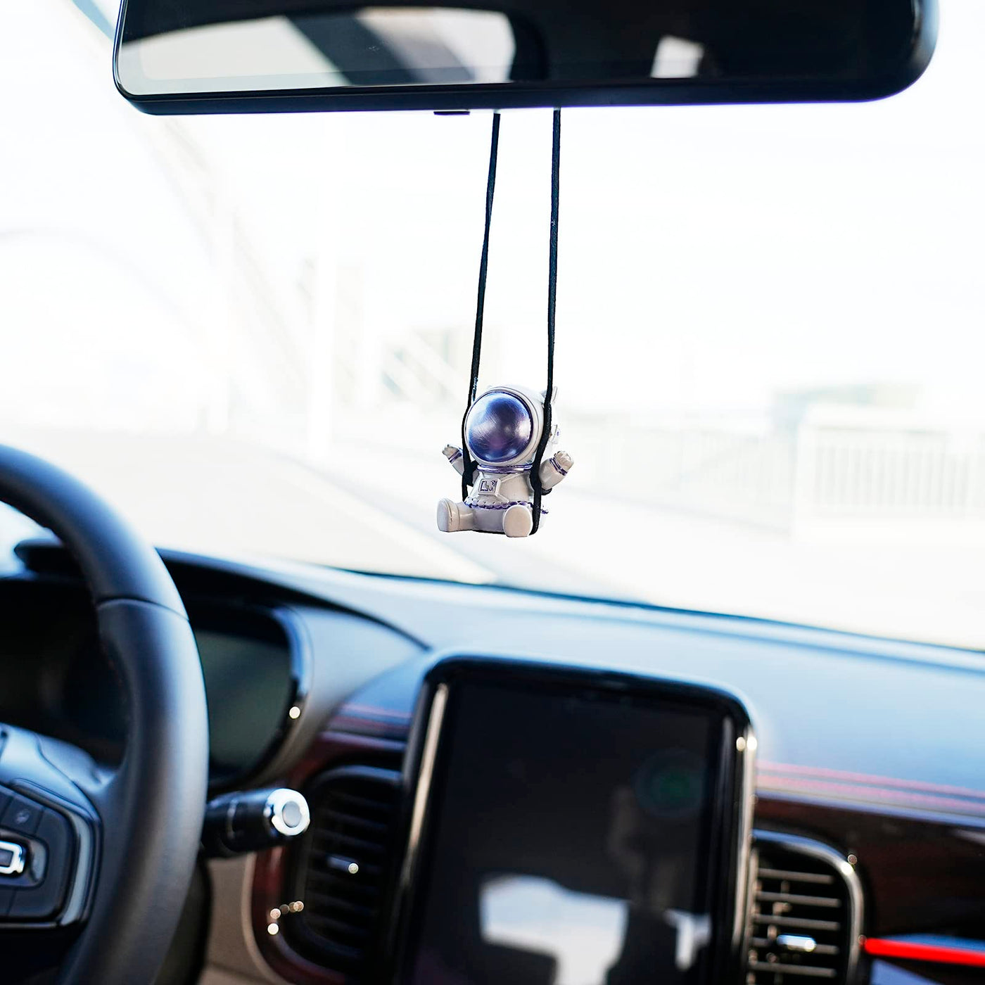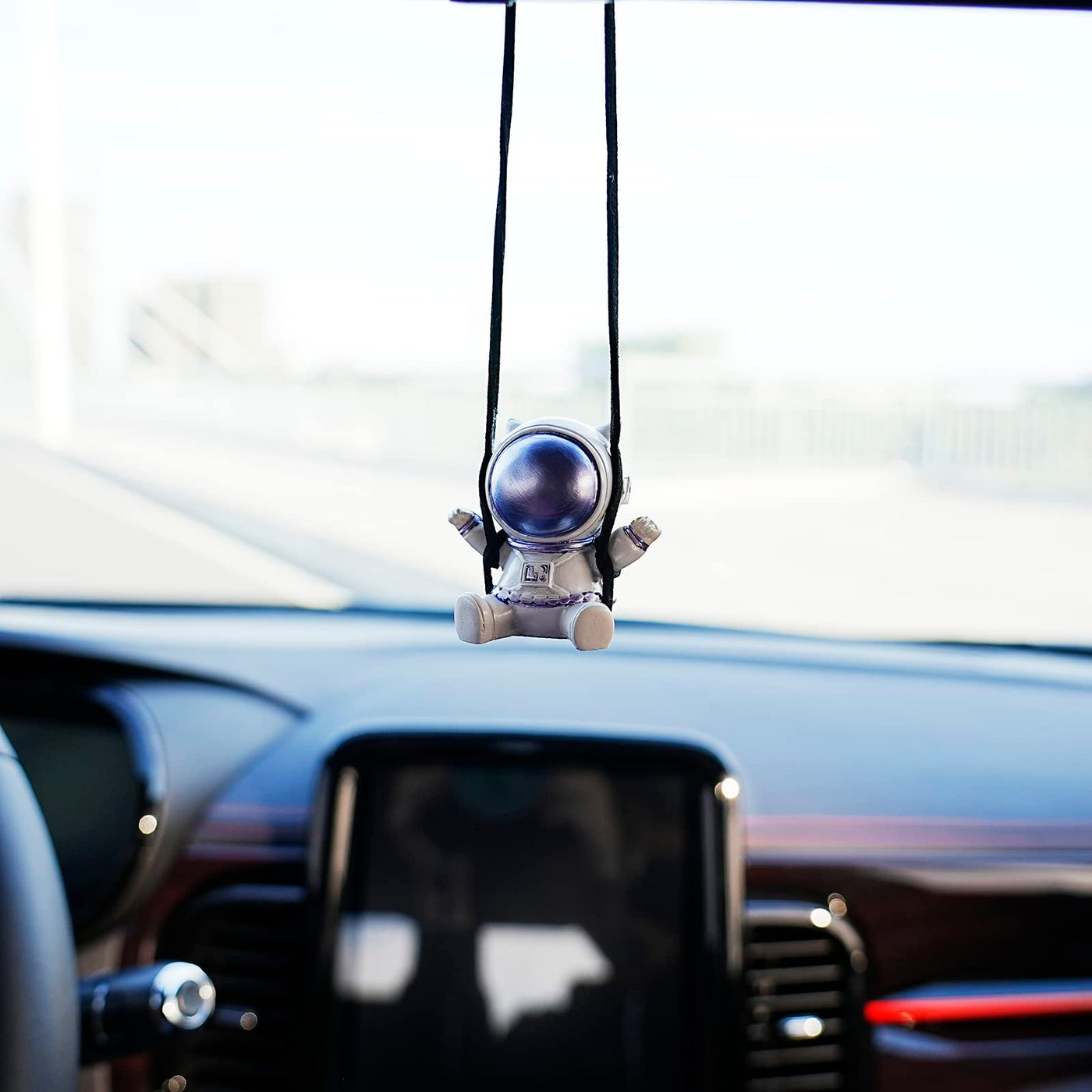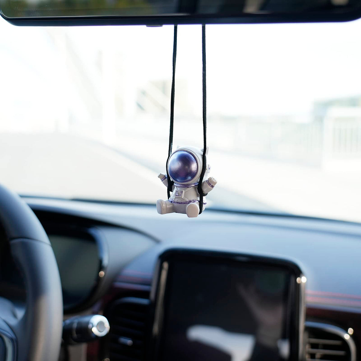 AMIORO Swing Astronaut Shaped Car Pendant Cartoon Car Rear View Mirror Hanging Ornaments (New Blue)
