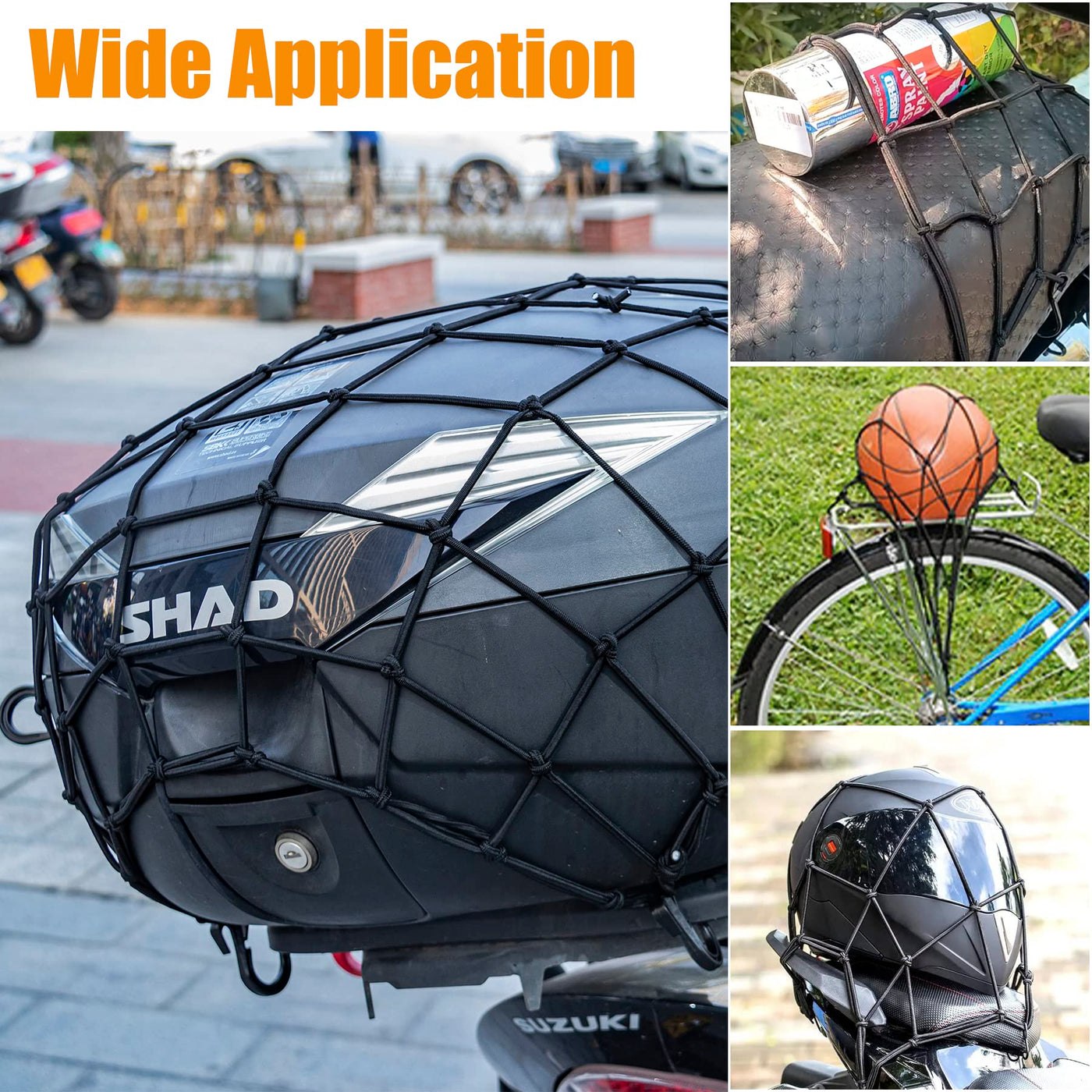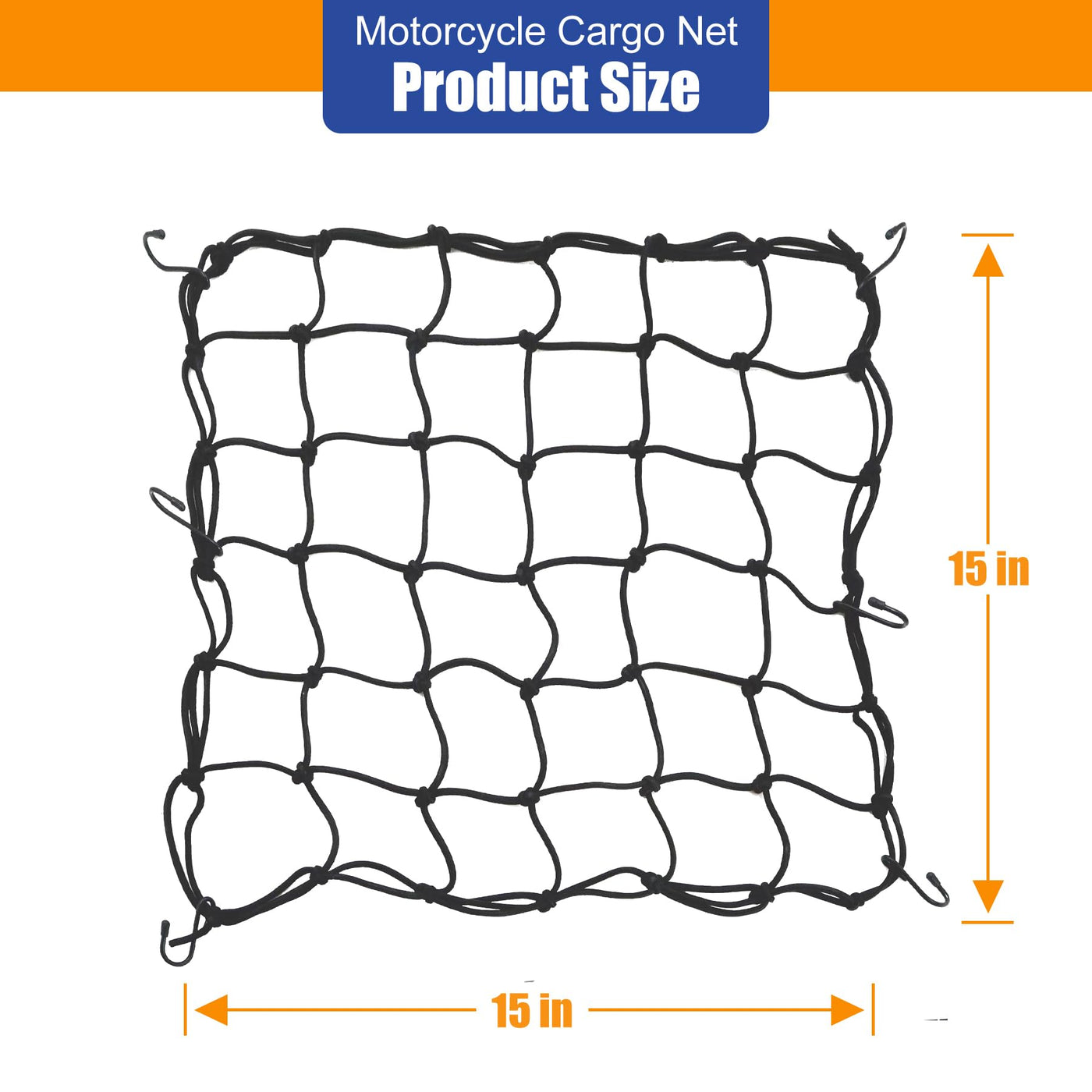 Amiss 15'X15' Elastic Motorcycle Cargo Net, Heavy Duty Bungee Net With 6 Adjustable Plastic Hooks, Luggage Thicken Netting With 2'X2' Small Mesh, Fit For Trailer, Suv, Motorcycle, Atv, Bike - Black