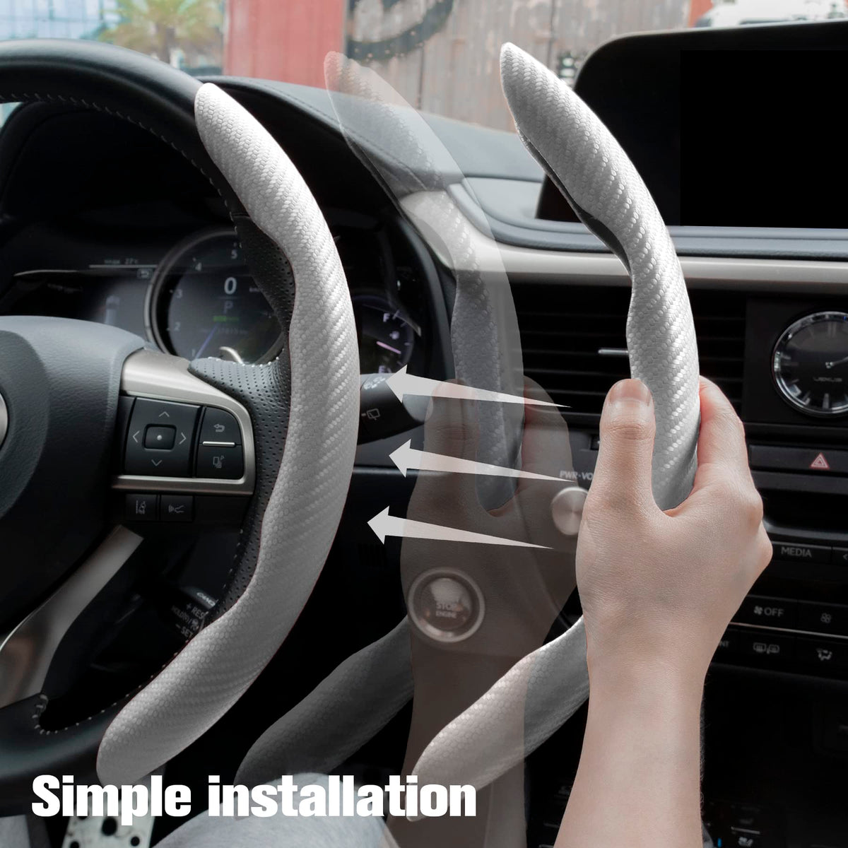 Amiss Car Carbon Fiber Anti-Skid Steering Wheel Cover, Segmented Steering Wheel Protector, Butterfly Cover, Universal 99% Car Wheel Cover Protector For Car Interior Accessories (White)
