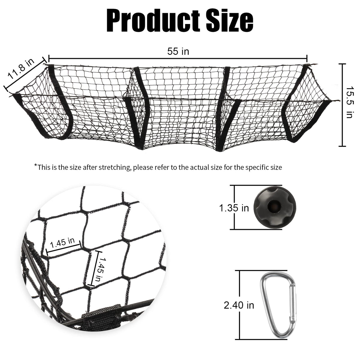 Amiss Heavy Duty Mesh Cargo Net, 3 Pocket Trunk Bed Storage Organizer Compatible For Suv, Car, Pickup Truck Bed, Etc.With 4 Meta