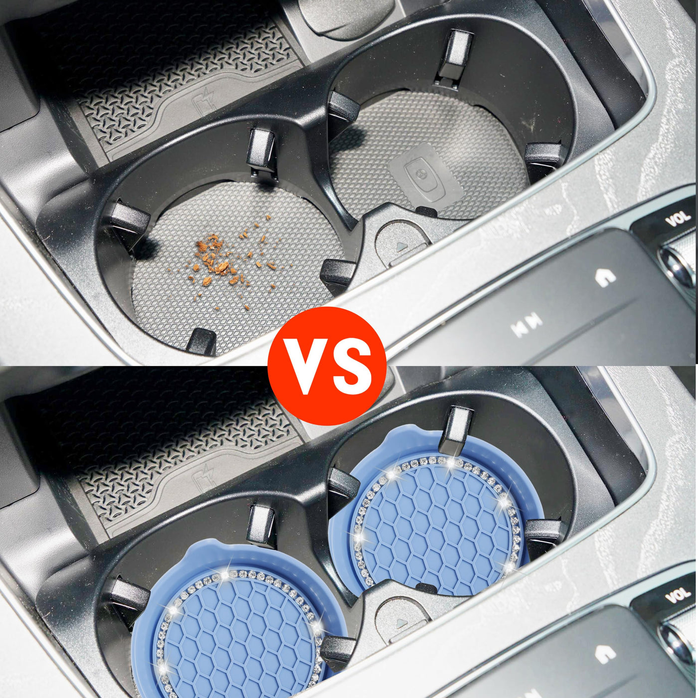 Amooca Car Cup Coaster Universal Non-Slip Cup Holders Bling Crystal Rhinestone Car Interior Accessories 2 Pack Gray Blue