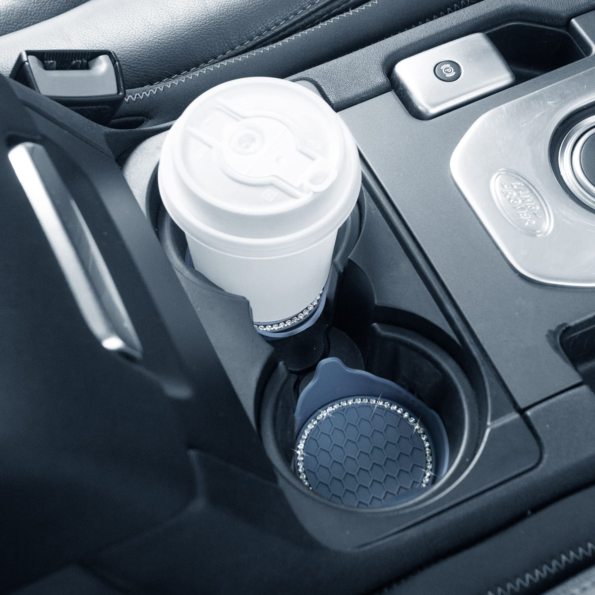 Amooca Car Cup Coaster Universal Non-Slip Cup Holders Bling Crystal Rhinestone Car Interior Accessories 2 Pack Grey