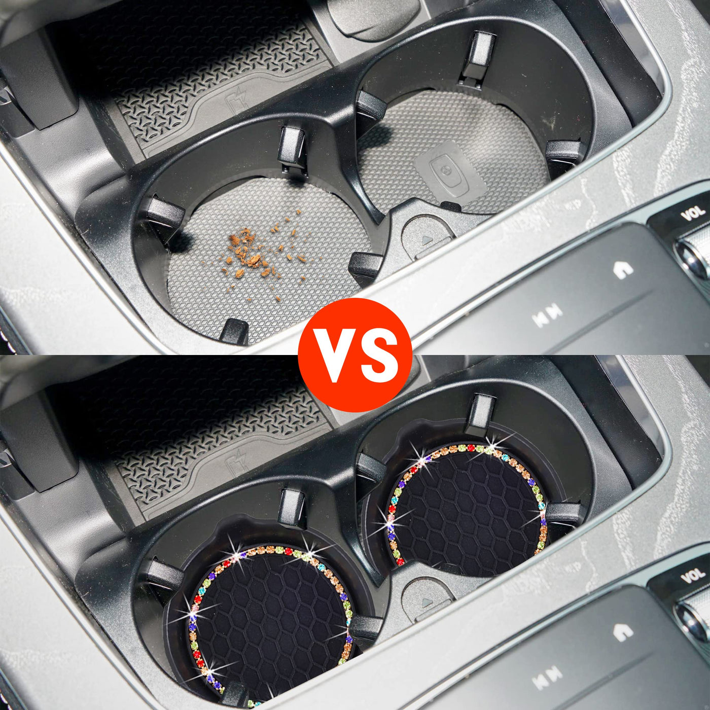 Amooca Car Cup Coaster Universal Non-Slip Cup Holders Bling Crystal Rhinestone Car Interior Accessories 4 Pack Black Coloured