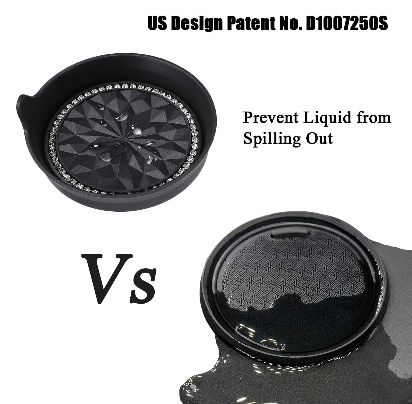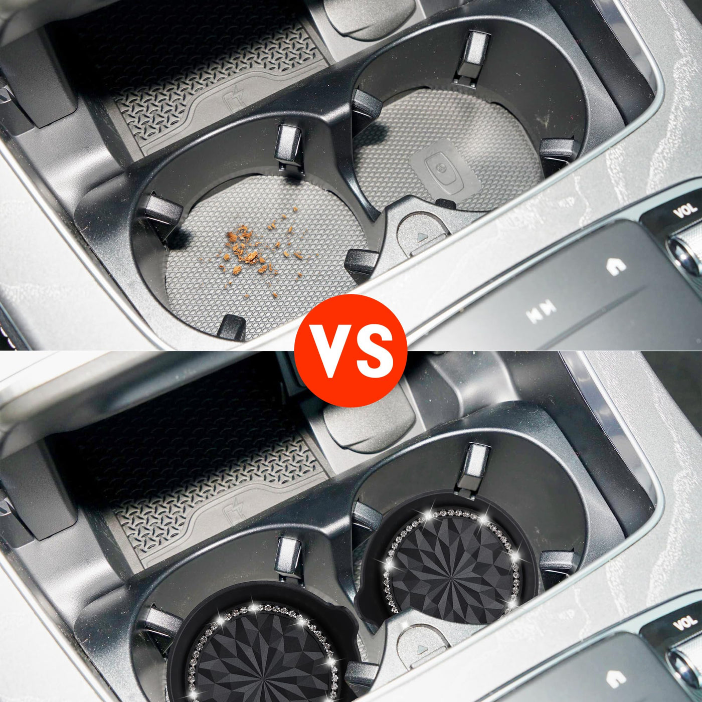 Amooca Car Cup Coaster Universal Non-Slip Cup Holders Bling Crystal Rhinestone Car Interior Accessories 4 Pack Black Flower