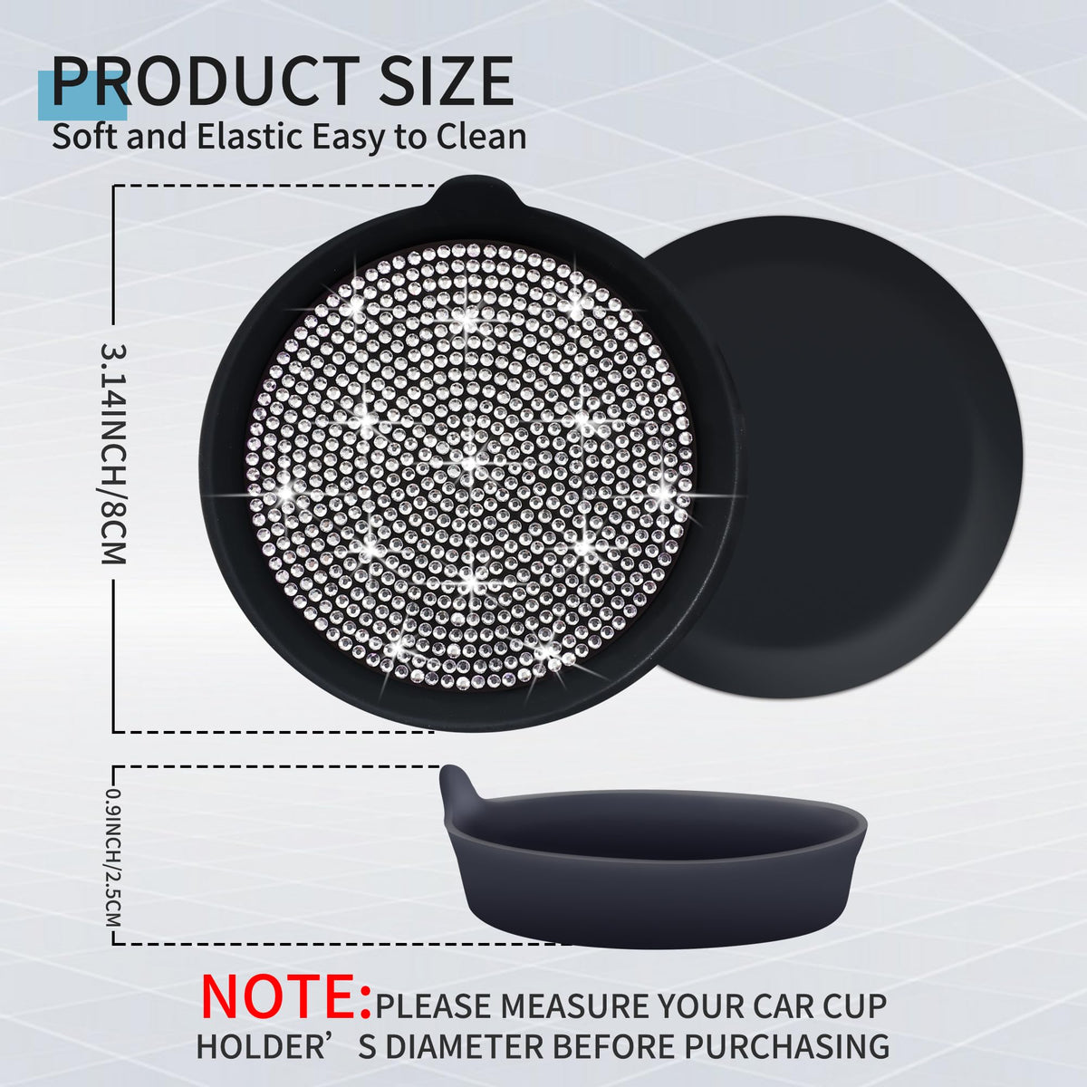 Amooca Car Cup Coaster Universal Non-Slip Cup Holders Bling Crystal Rhinestone Car Interior Accessories 4 Pack Black Whole Rhine