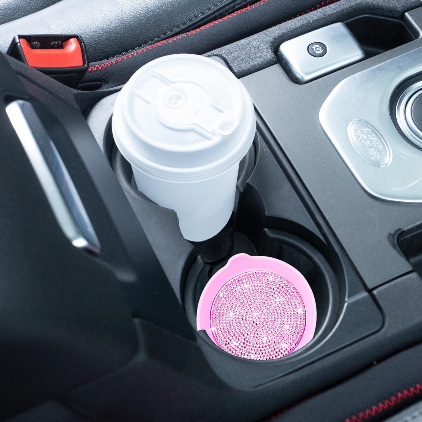 Amooca Car Cup Coaster Universal Non-Slip Cup Holders Bling Crystal Rhinestone Car Interior Accessories 4 Pack Pink Whole Rhines