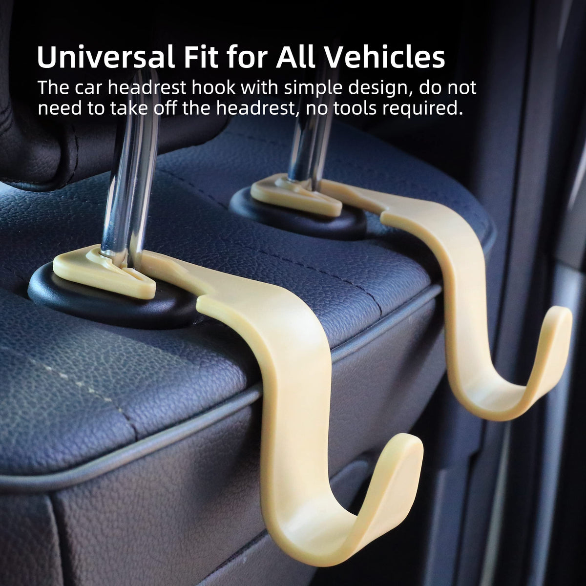 Amooca Car Seat Headrest Hook 4 Pack Hanger Storage Organizer Universal for Handbag Purse Coat Universal fit Vehicle Car Beige w