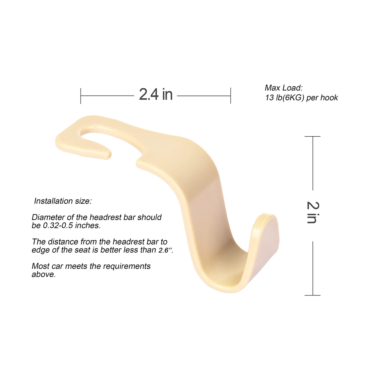 Amooca Universal Multifunctional Car Vehicle Headrest Hook, Organizer Hanger Storage Hook For Bag Purse Cloth Grocery (Beige Set