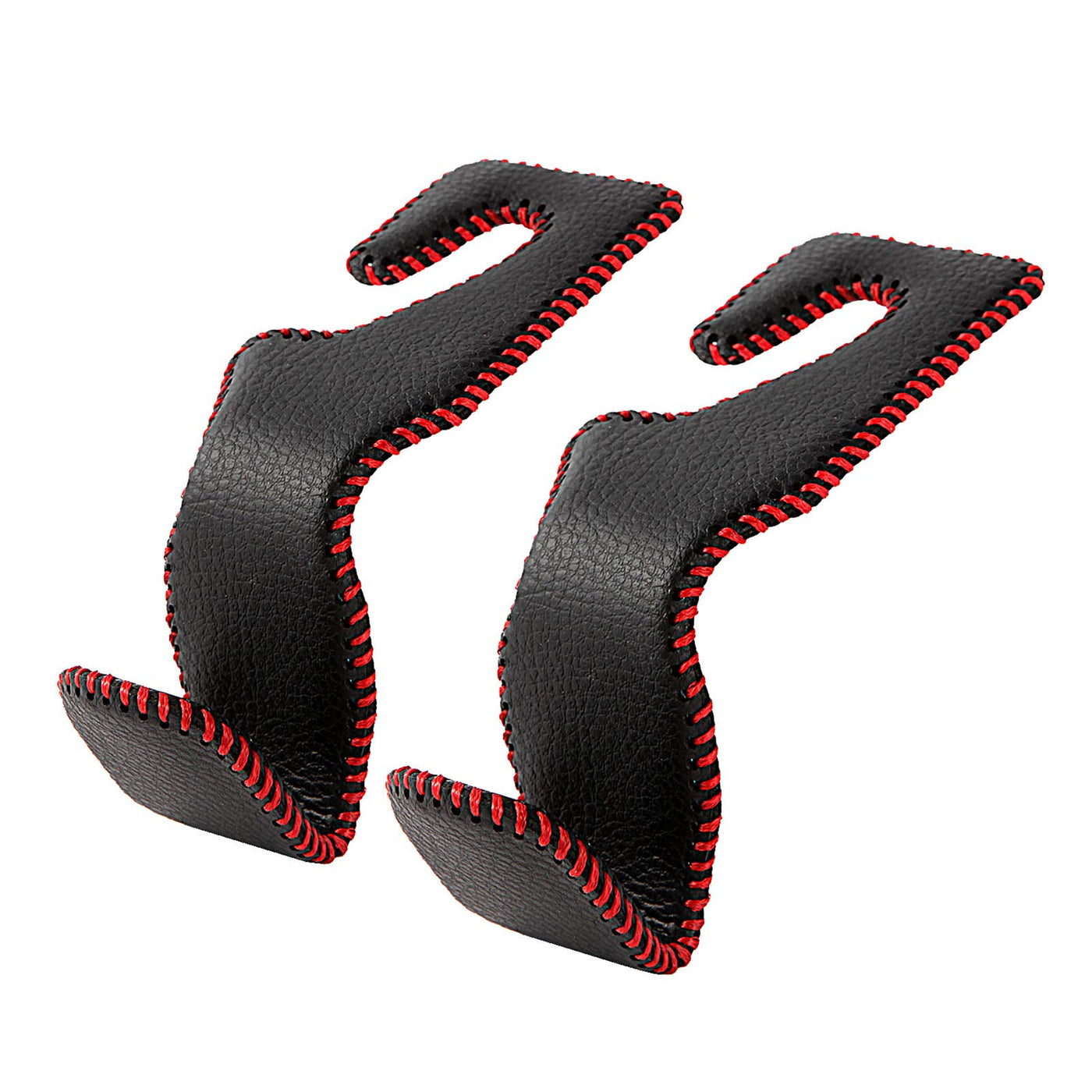Amvoyoa Car Headrest Hook, Leather Vehicle Back Seat Hanger Storage For Purse Groceries Bag And More, Black&Red, Pack Of 2