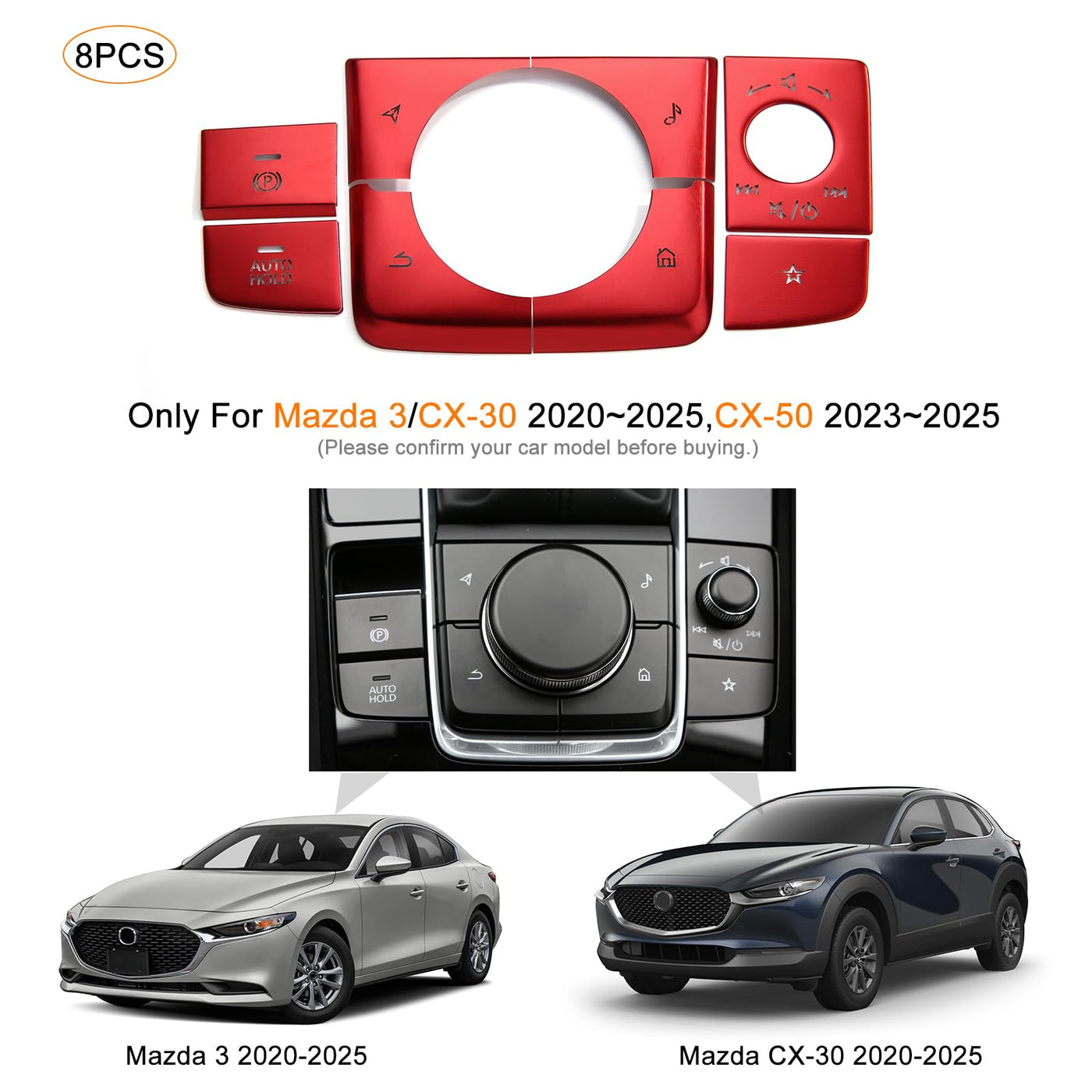 Anfokas 8Pcs Compatible With Mazda 3 Cx-30 Cx-50 2025 2024 2023 2022 2021 2020 Accessories Car Center Console Cover Gears Gear Panel Gear Shift Knob Button Cover Trims -Red