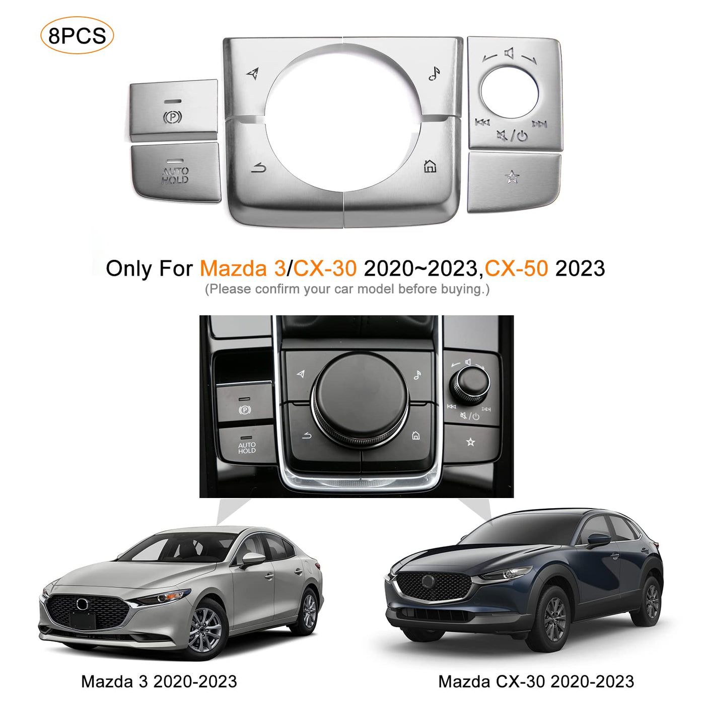 Anfokas 8Pcs Compatible With Mazda 3 Cx-30 Cx-50 2025 2024 2023 2022 2021 2020 Accessories Car Center Console Cover Gears Gear Panel Gear Shift Knob Button Cover Trims -Silver