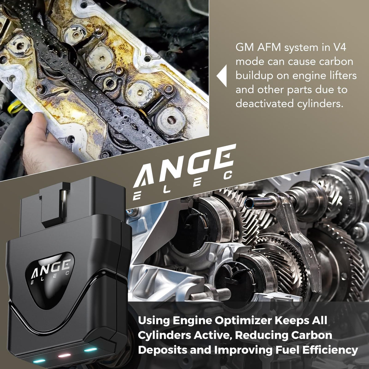 Q: What does the ANGE ELEC AFM DFM Disabler do?A: The ANGE ELEC AFM DFM Disabler optimizes your vehicle's engine performance by maintaining V8/V6 operation, enhancing fuel combustion efficiency, and reducing carbon deposits, leading to improved fuel efficiency and smoother engine operation.