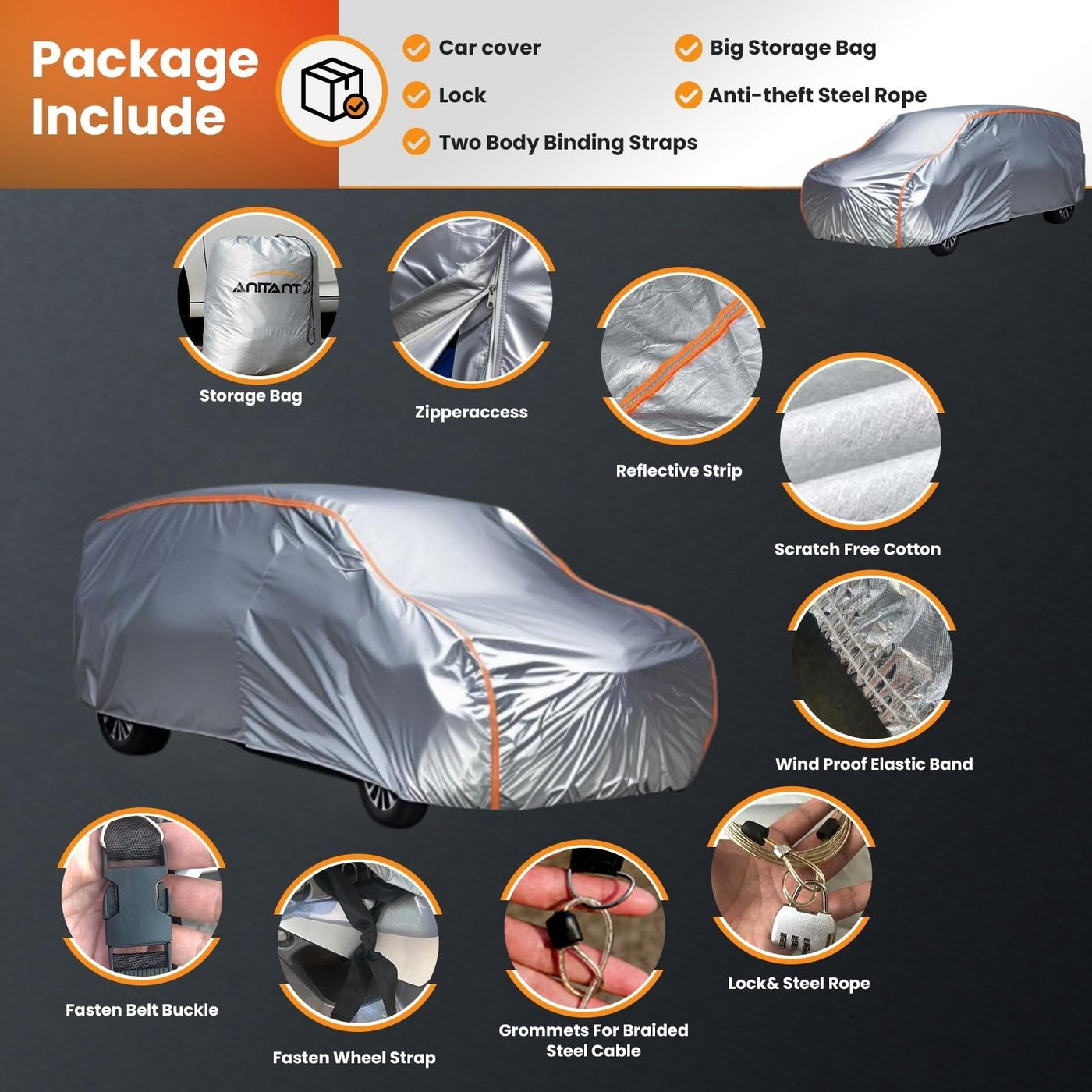 Anitant Durable Bright Silver Four Seasons Mini Van Cover Waterproof All Weather Large Car Cover For Van Full Size Fit Vans Unde