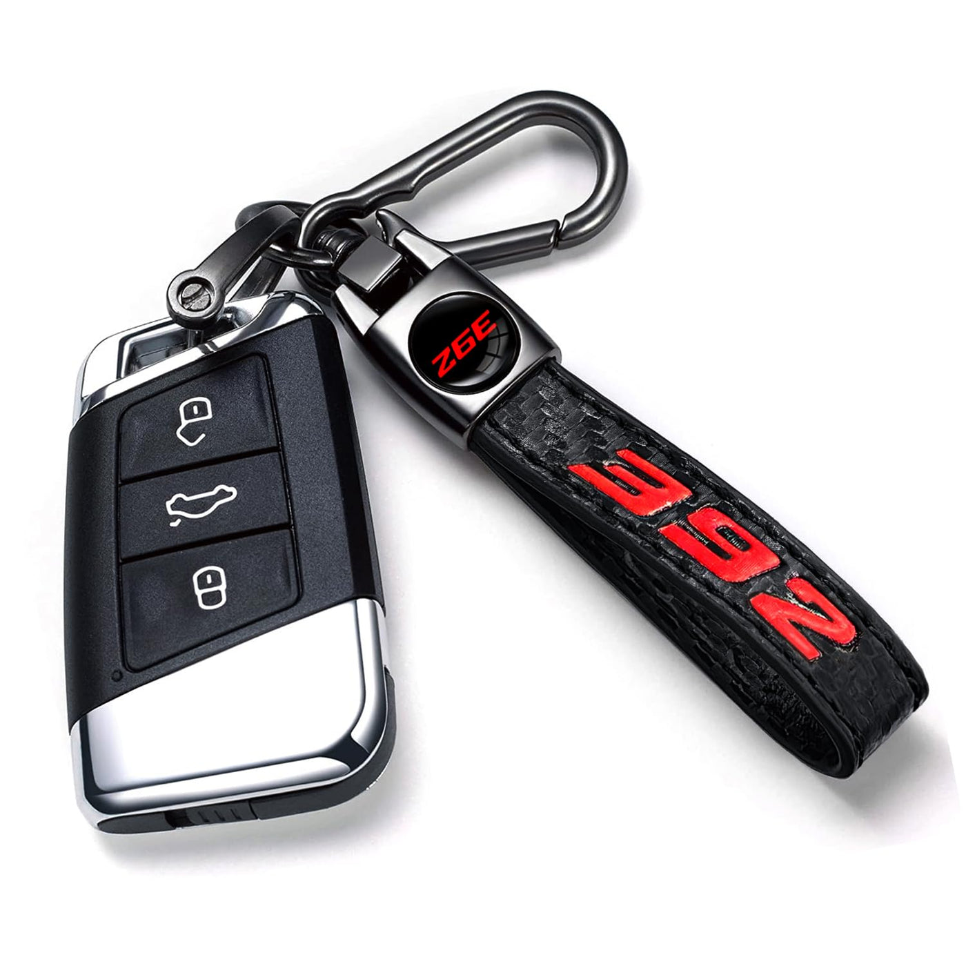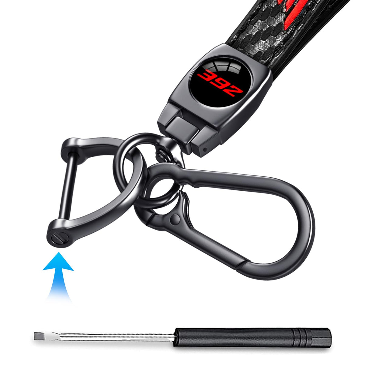 Annloysky Black Carbon Fiber Leather Metal Car Keychain Keyring Compatible with Dodge Challenger Durango SRT 392 Cars Accessorie