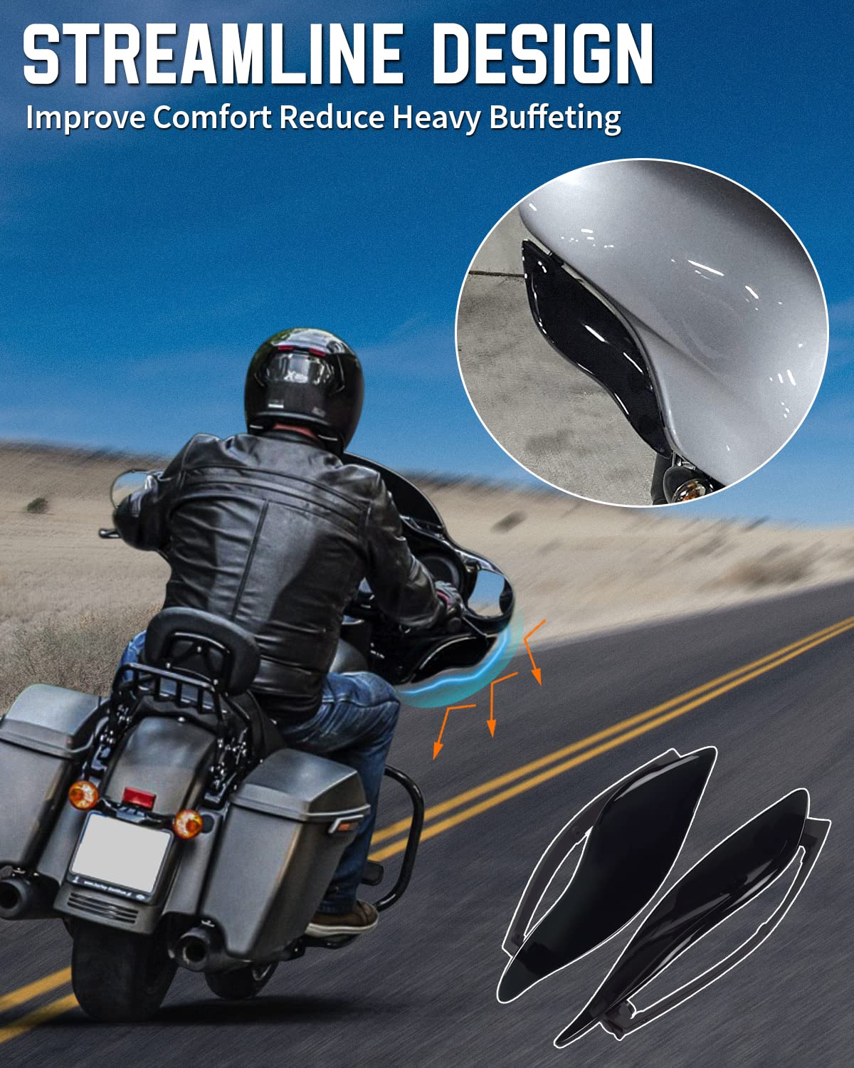 Anonemoto Black Adjustable Wind Deflectors Upper Fairing Air Deflectors Compatible For Harley Davidson 2014-2024 Street Glide Electra Glide Ultra Limited Tri Glide Cvo Fairing Side Wing Windshield